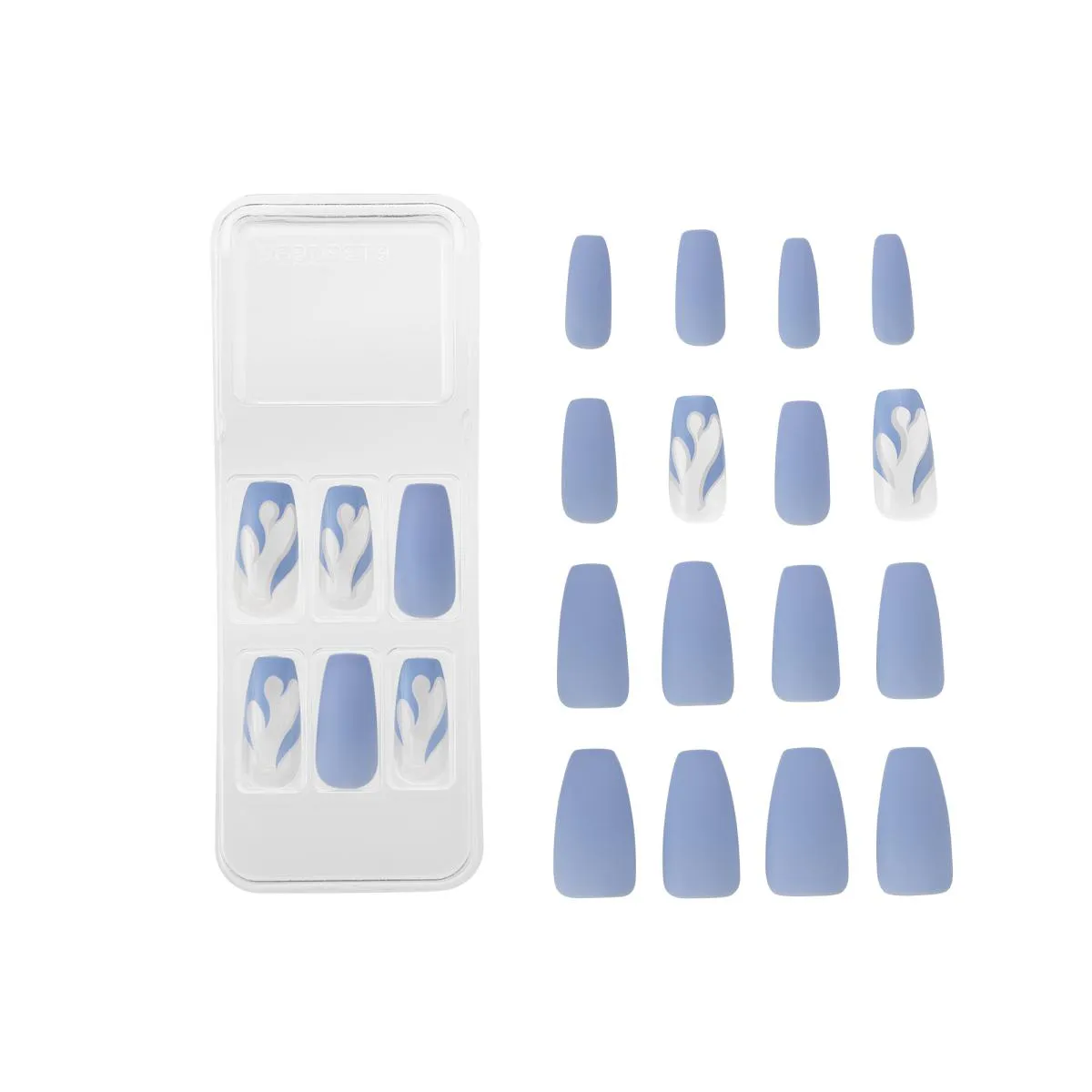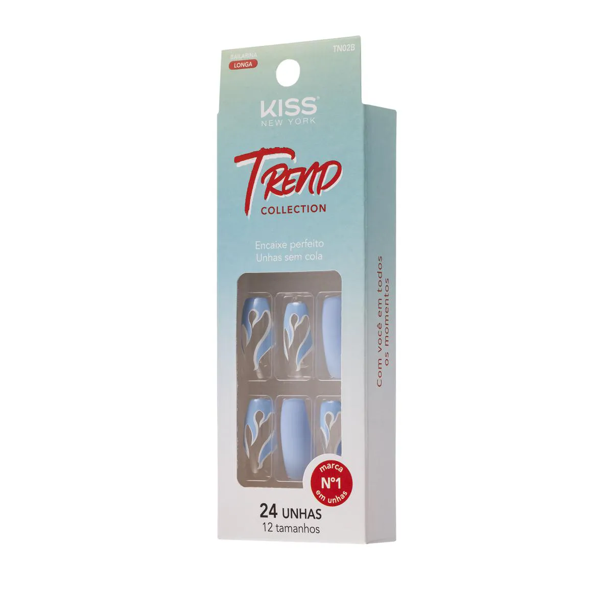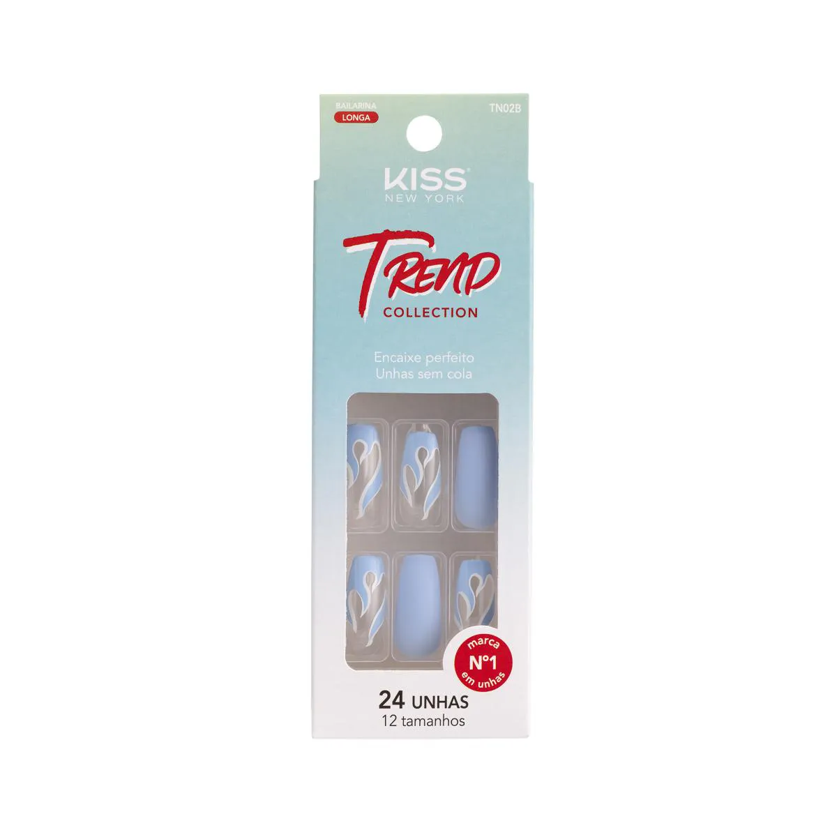 unhas postiças TREND COLLECTION OCEAN da KISS NEW YORK As unhas postiças da Edição Limitada OCEAN da KISS NEW YORK apresentam base transparente e um design inovador. No formato bailarina longo, elas elevam o visual das suas mãos para um novo nível. Além disso, garantem conforto excepcional, graças ao encaixe perfeito que proporciona uma aplicação rápida e fácil. Experimente o resultado exclusivo que apenas as unhas KISS NEW YORK podem oferecer. Características: