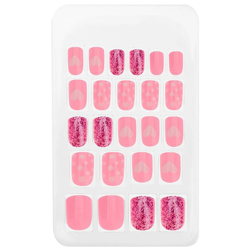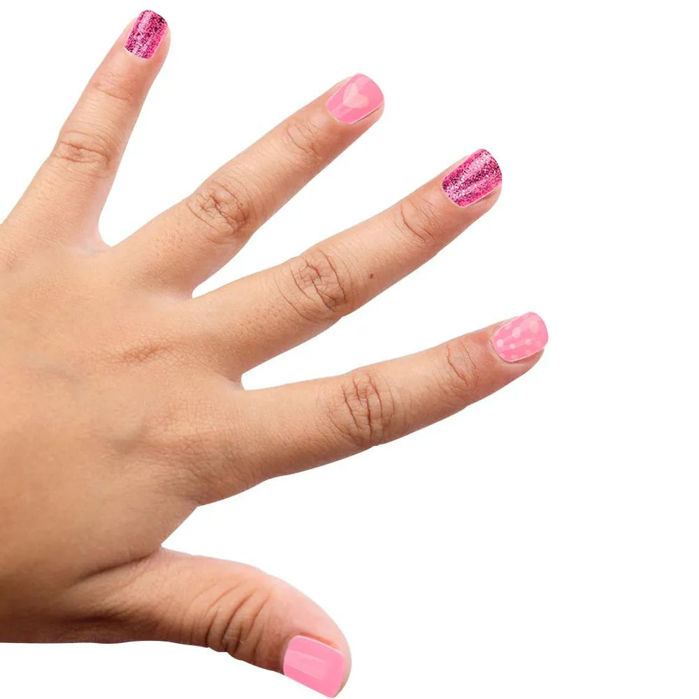A Linha Pink de unhas postiças infantil autocolante de Kiss NY, desenvolvidas com cola à base de água para facilitar sua remoção em água morna. Aprovada pelas mamães, são indicadas para crianças de 8 a 12 anos e contam com um design divertido e cheio de desenhos!