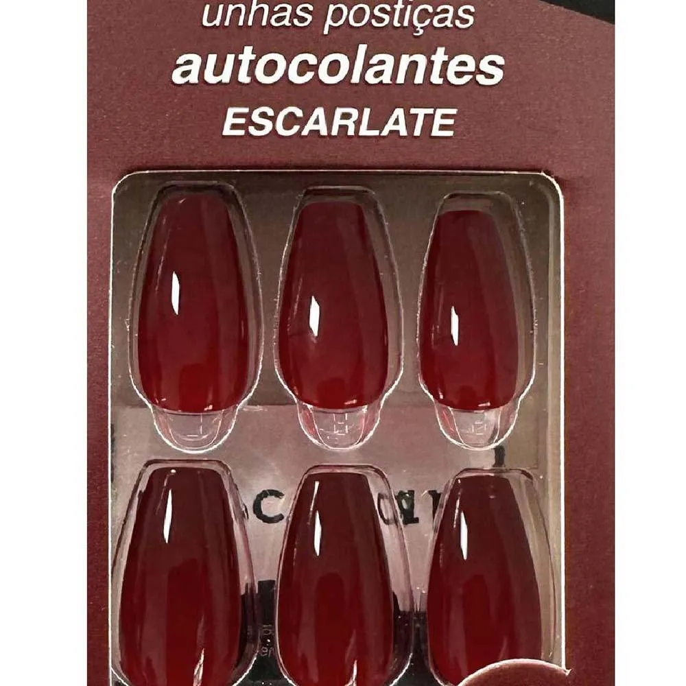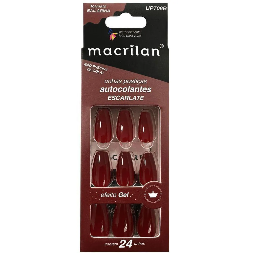 Unhas Postiças Macrilan Autocolantes Tamanho Médio Formato Bailarina Escarlate Up708b