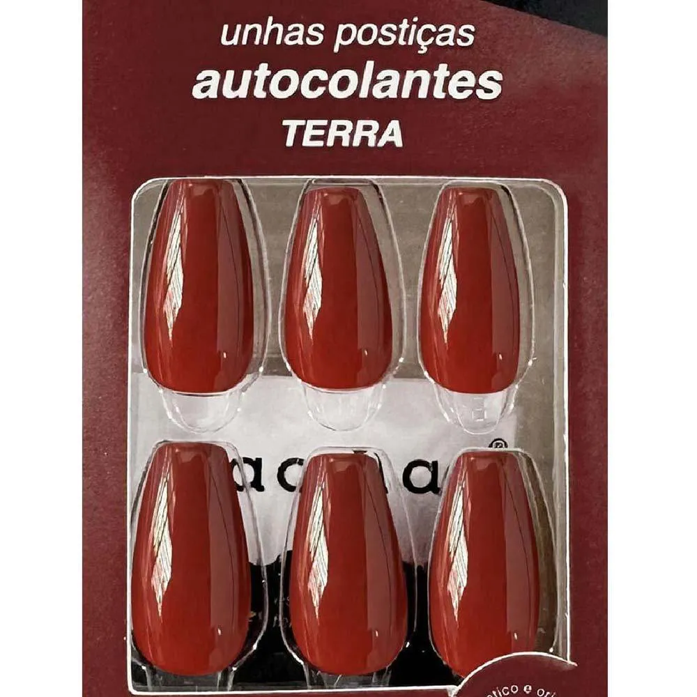 Unhas Postiças Macrilan Autocolantes Tamanho Médio Formato Bailarina Terra Up709b