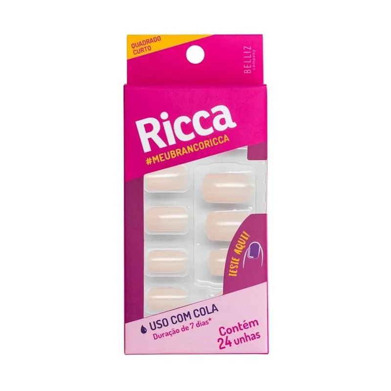 Unhas Ricca Autoadesiva Branco Sonho. As unhas postiças Ricca são feitas em plástico flexível e resistente, além disso possuem cobertura UV, o que faz com que suas cores permaneçam lindas e brilhantes por até uma semana.