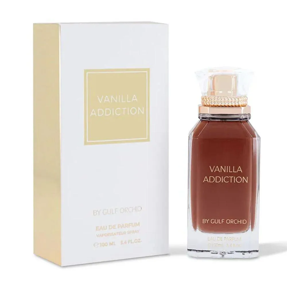 Vanilla Addiction de Gulf Orchid é um perfume oriental gourmand envolvente, que combina o doce cremoso da baunilha com notas florais, atalcadas e picantes — perfeito para quem ama fragrâncias intensas, sensuais e marcantes.
