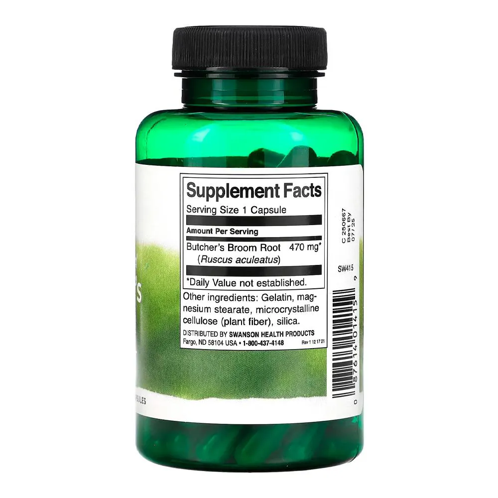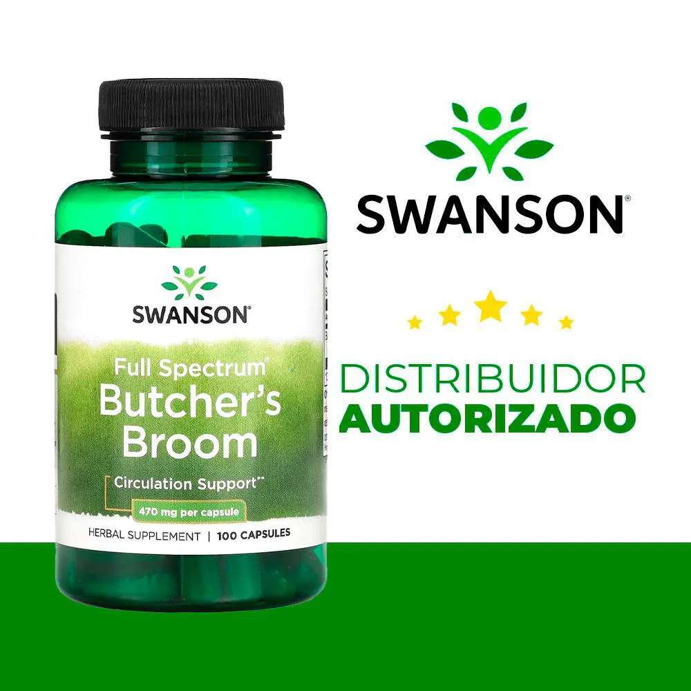 Vassou-ra Açougueiro 470mg Swanson 100 Cápsulas Importado 1. Suporte Natural com Vassou-ra de Açougueiro