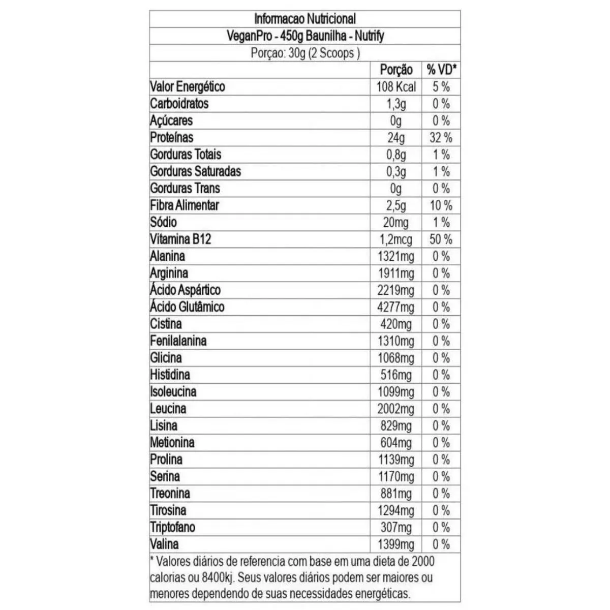 Proteína Vegetal em Pó Nutrify VeganPro Baunilha 450g