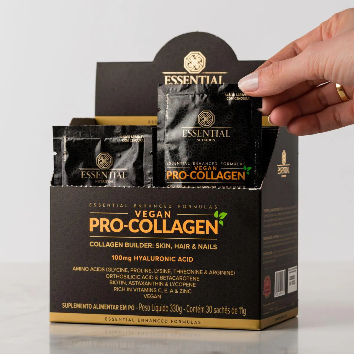 - Abra um sachê de 11g do Vegan Pro-Collagen.