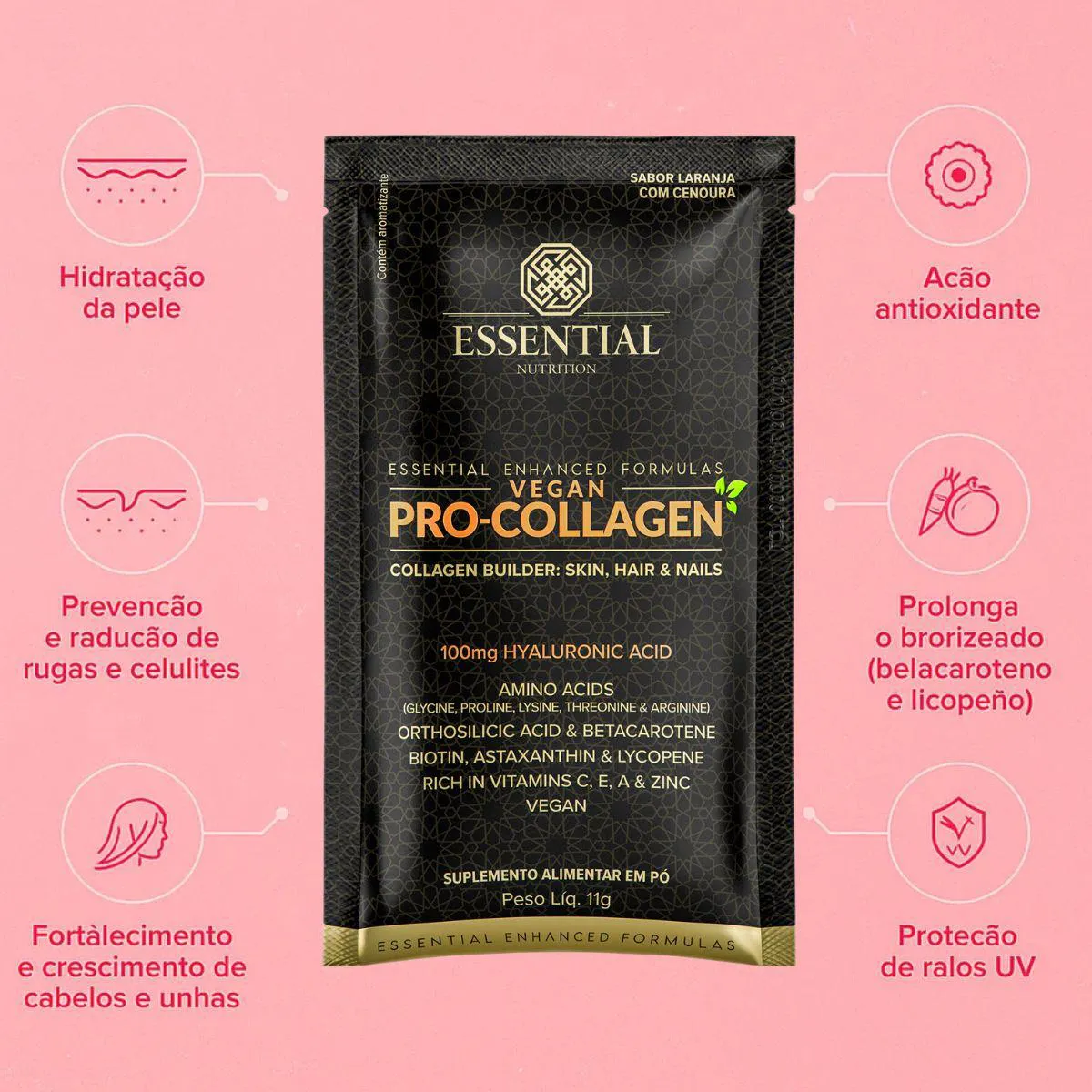 O que é e para que serve o Vegan Pro-Collagen 100Mg 30 Sachês 11G Vegano 330G Essential Laranja?