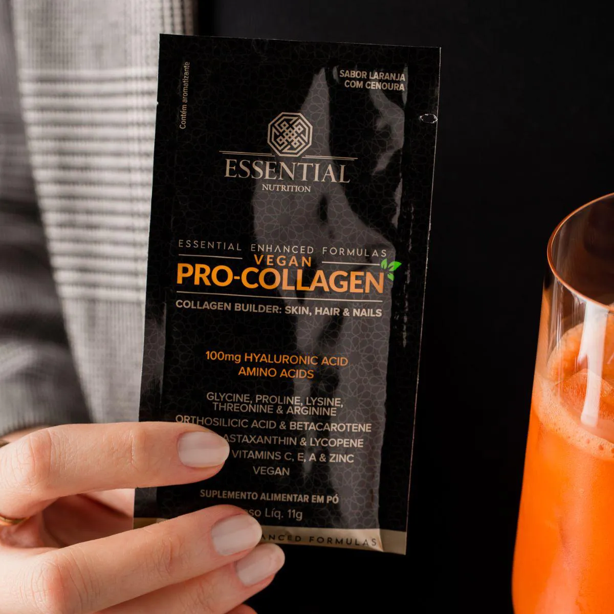 Vegan Pro-Collagen 100Mg 30 Sachês 11G Vegano 330G Essential Laranja