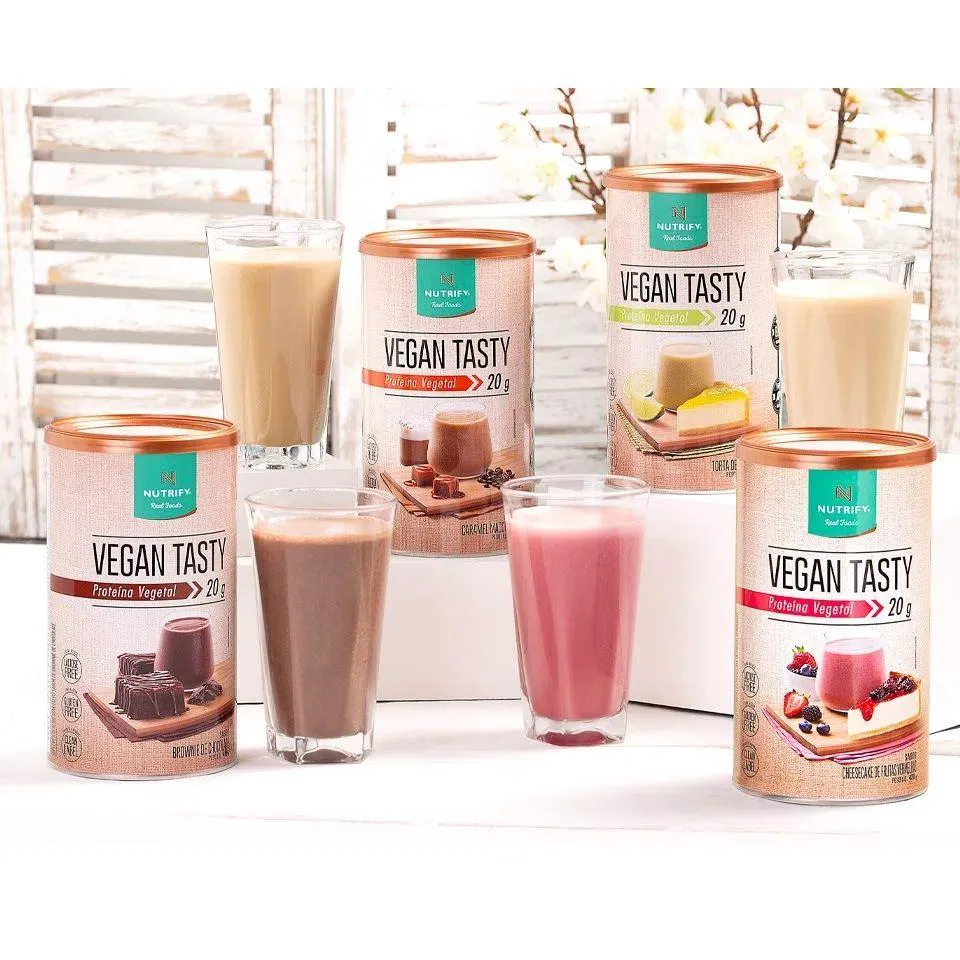 O Vegan Tasty é um suplemento proteico plant-based, produzido à base de proteína isolada de ervilha e girassol, enriquecido com vitamina B12. Elaborado com ingredientes naturais como farinha de amêndoas e chia, o produto oferece uma alternativa nutritiva e saborosa para complementação alimentar.