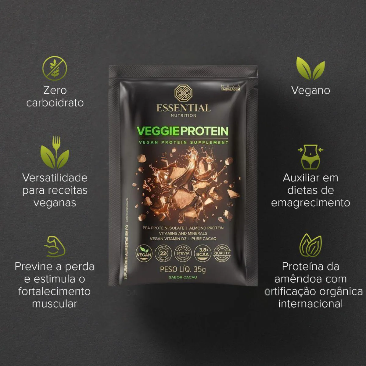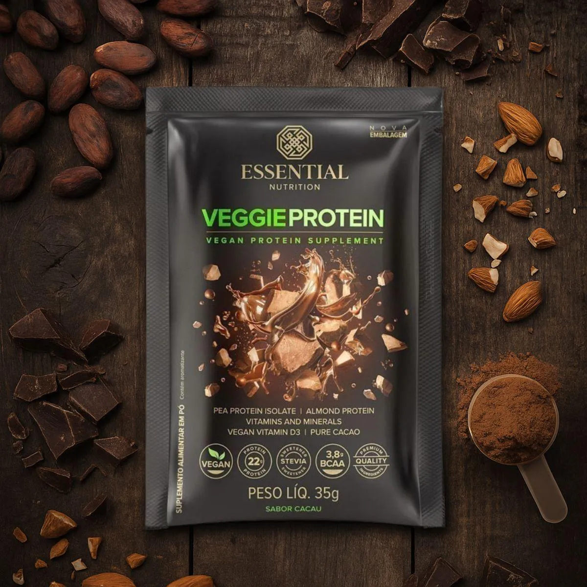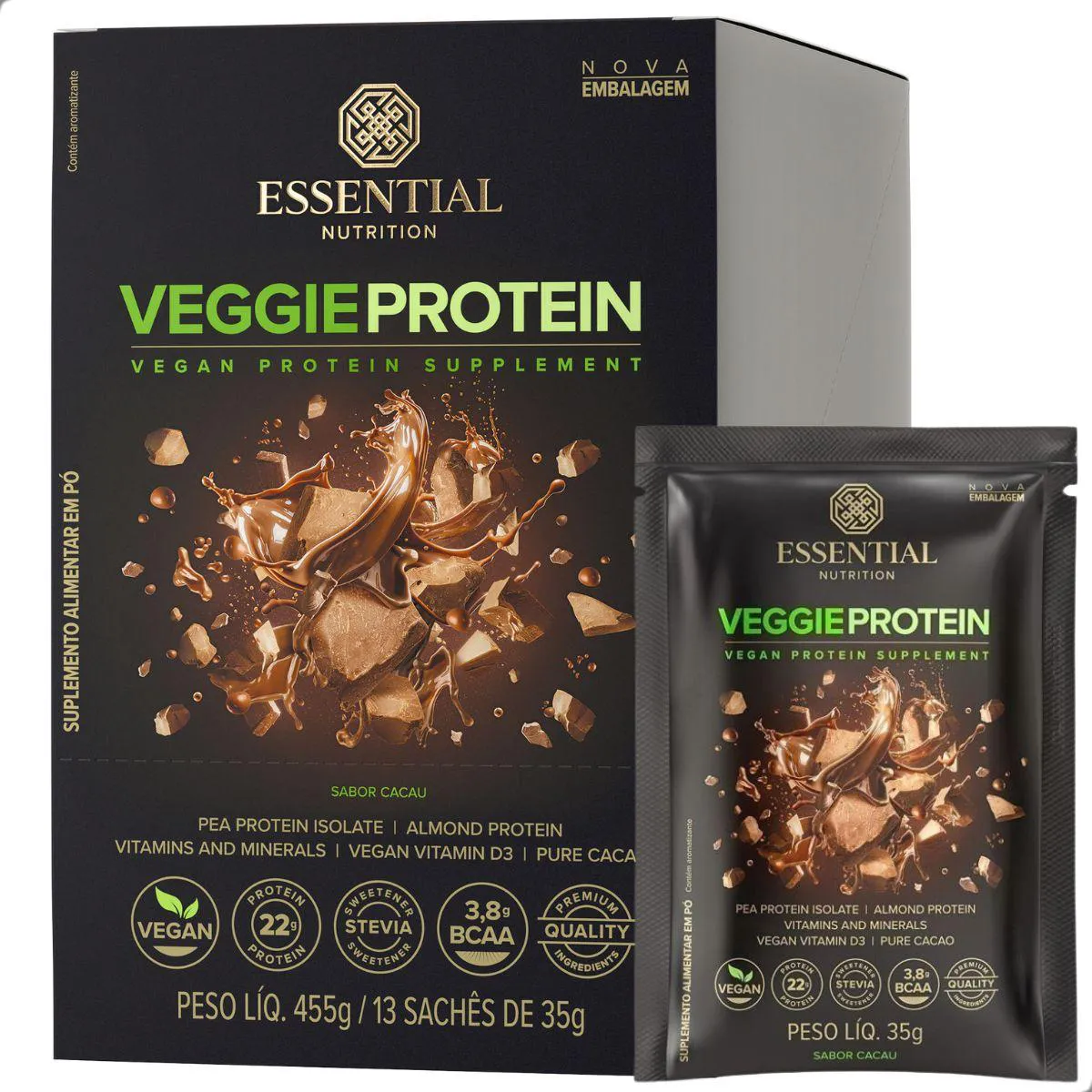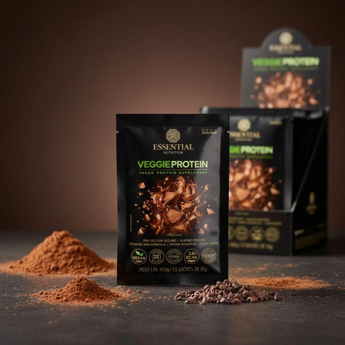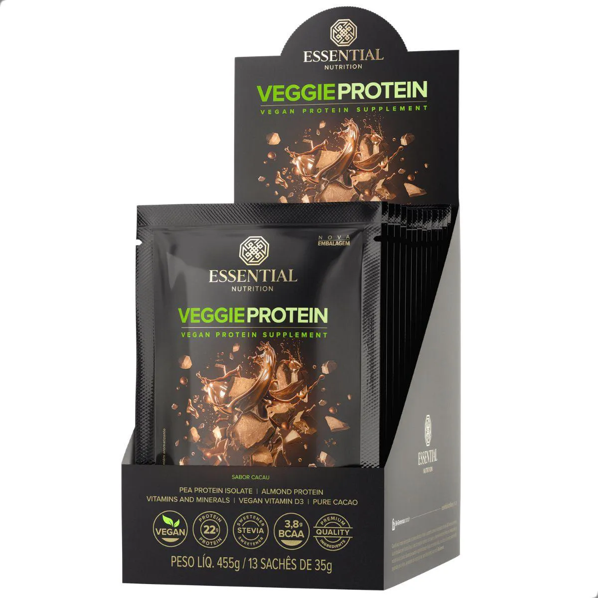 Veggie Protein Display Sachês Essential Cacau 35G 455g