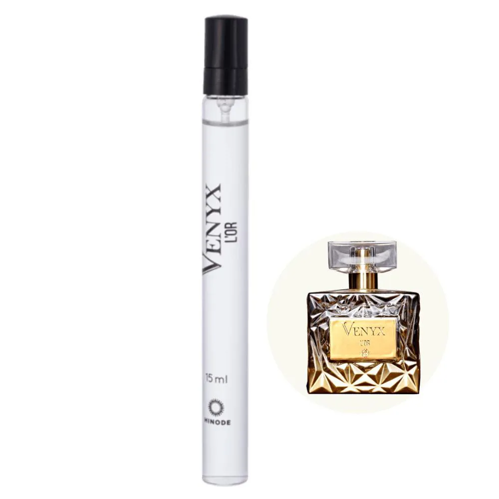 Fragrância VENYX L’OR para a mulher que se sente confiante, capaz de tudo, sem deixar de ser sofisticada. Seu conceito está atrelado ao poder da cor dourada, que é reflexo de sucesso e conquistas. A família olfativa é o CHYPRE MODERNO, que tem como principal característica ser marcante e chique ao mesmo tempo. O que torna o Chypre tão especial é a sua força e exuberância, uma junção do que existe de melhor na categoria de fragrâncias.