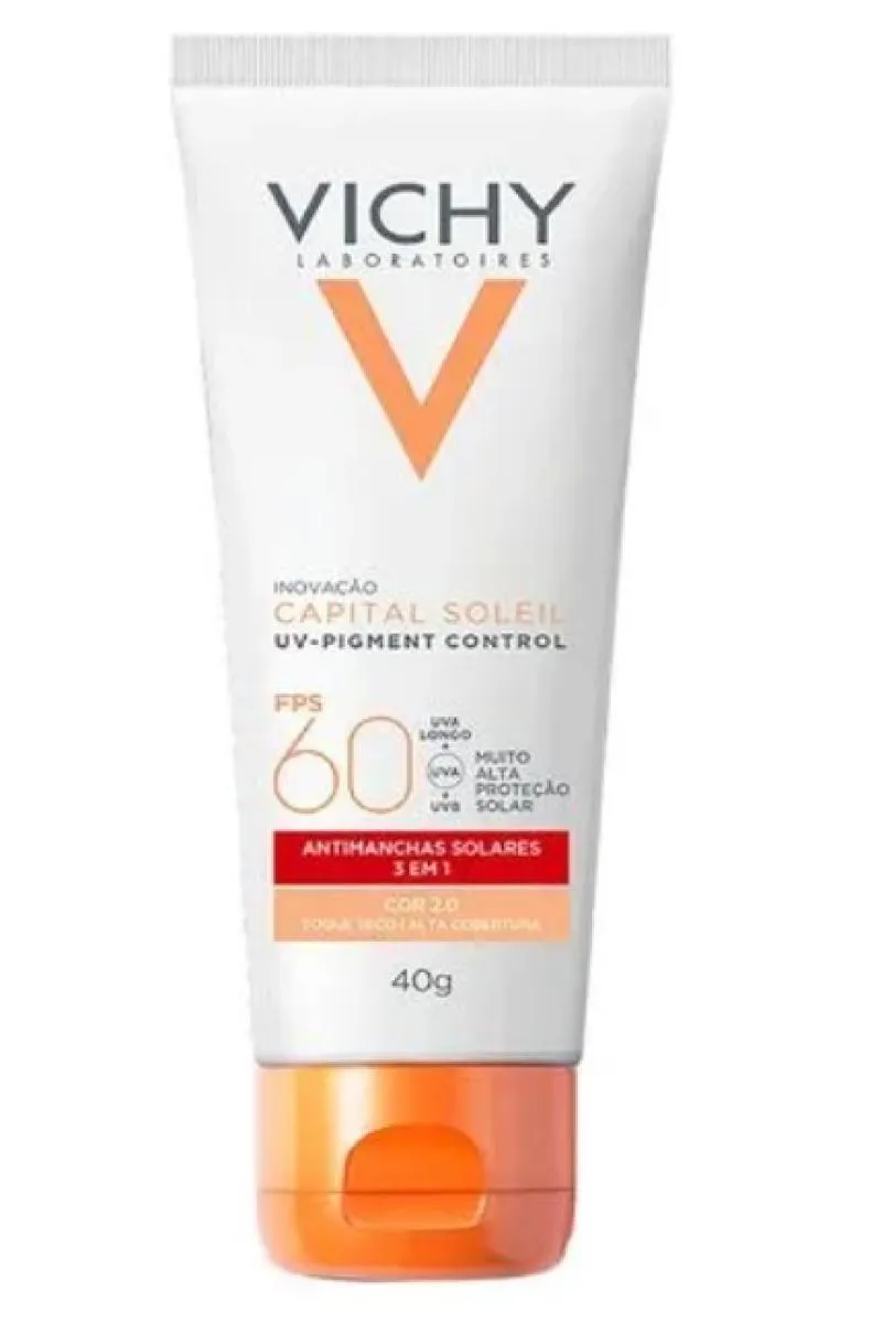 protetor solar com cor. Vichy Capital Soleil FPS60 confere alta cobertura para a pele, além de proteger contra os danos dos raios UVA E UVB.   O Protetor Solar Vichy Capital Soleil FPS60 conta com ativos especiais na fórmula, que ajudam amenizar as marcas solares, previnem a hiperpigmentação e uniformizam o tom da tez com um super acabamento.