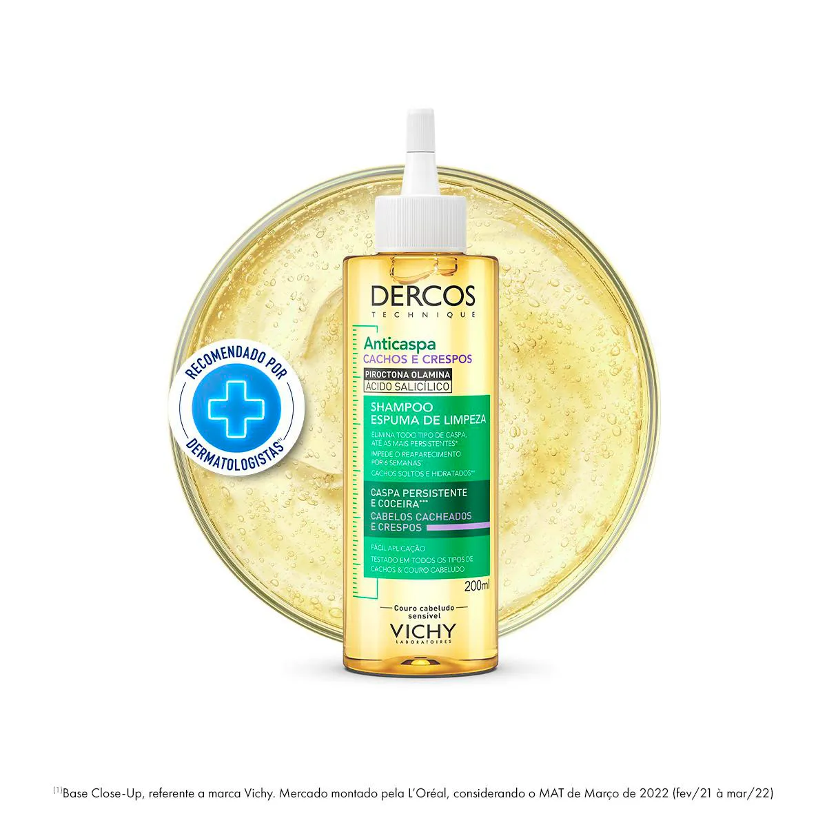 O Shampoo Espuma de Limpeza Vichy Dercos Anticaspa Cachos e Crespos é o primeiro da linha Dercos especialmente desenvolvido para atender as necessidades de cabelos cacheados e crespos. Com textura em espuma leve e fórmula com Piroctona Olamina e Ácido Salicílico, ele limpa o couro cabeludo sem agredir, combate a caspa desde a 1ª aplicação e previne seu reaparecimento por até 6 semanas.