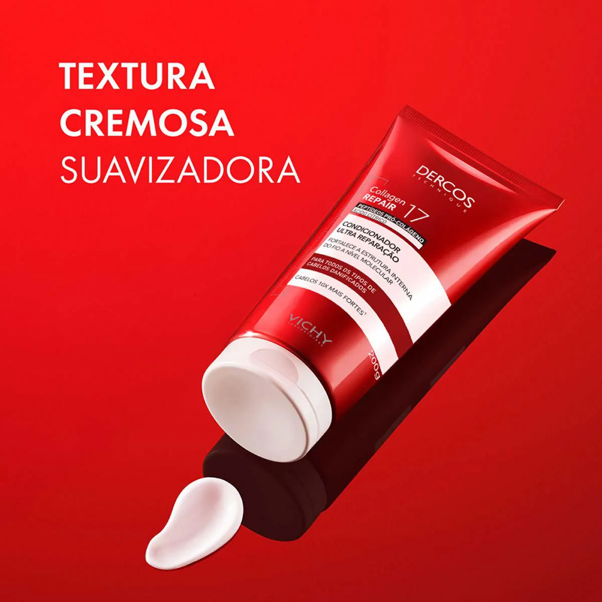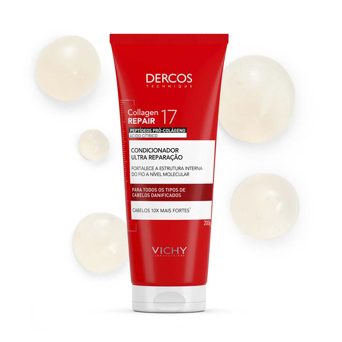 - Condicionador Ultra Reparação Vichy Dercos Collagen 17 desembaraça imediatamente os fios.