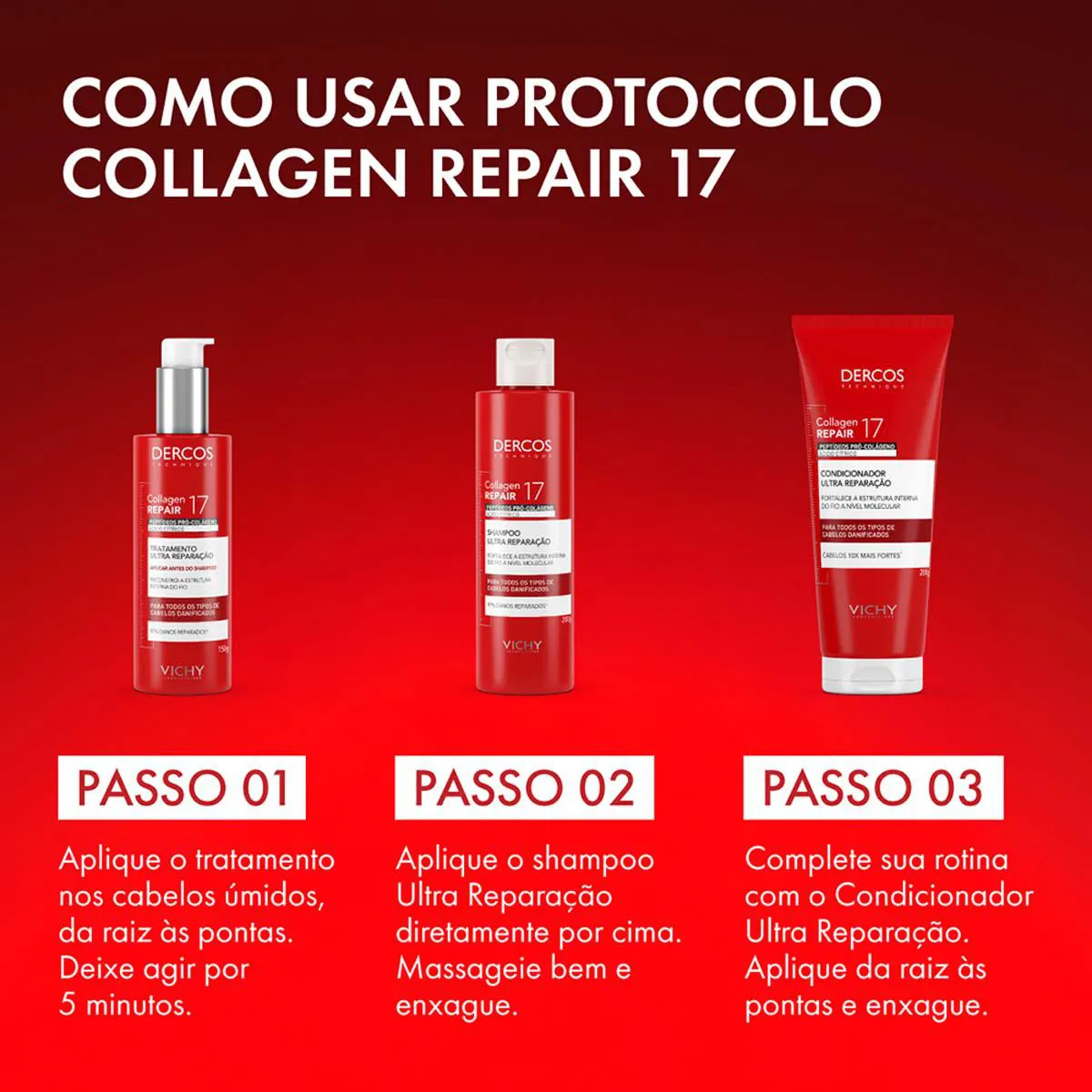 - Para melhores resultados, siga o protocolo Dercos de 3 passos: