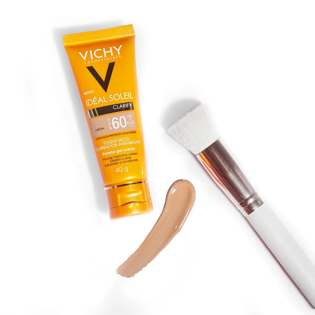 Ideal para uso diário. Vichy Idéal Soleil Clarify FPS60 oferece proteção avançada contra UVA, UVB e Luz Visível, com efeito clareador, toque seco e acabamento matte natural. Reduz manchas gradualmente, uniformiza o tom da pele e controla a oleosidade.Conselho de Aplicação