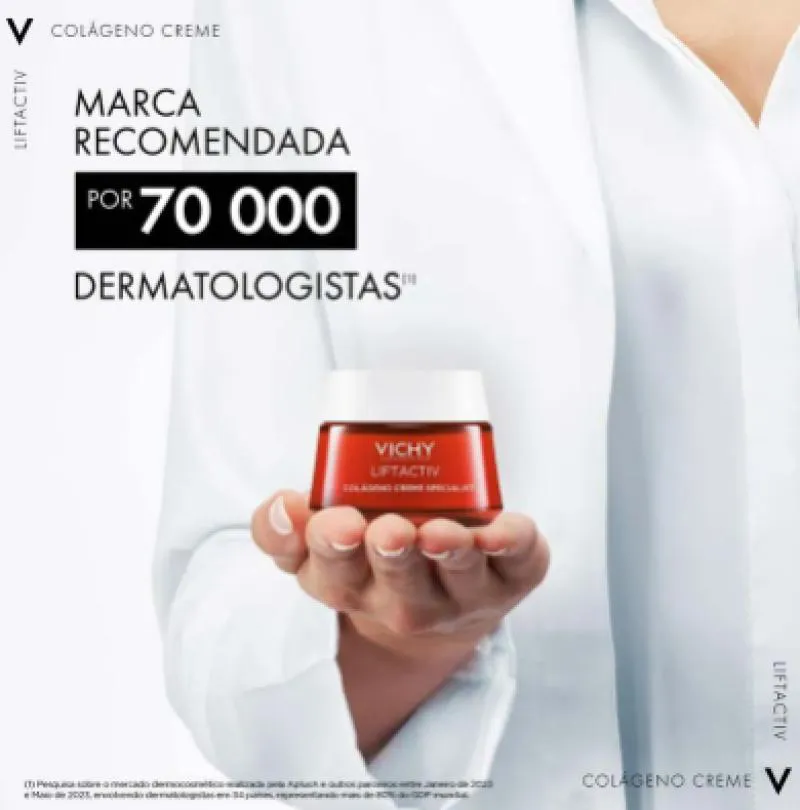 O Vichy Liftactiv Creme Colageno 50Ml é um creme facial antienvelhecimento desenvolvido pela marca Vichy, especializado em hidratação e combate aos sinais de envelhecimento. O produto serve para nutrir a pele, estimular a produção natural de colágeno, reduzir rugas e linhas de expressão, melhorando a elasticidade e firmeza da pele, proporcionando um aspecto mais jovem e renovado.