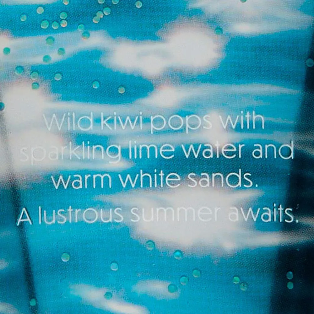 Eficácia: A fragrância combina kiwi silvestre e lima para um frescor frutado, com água de azahar e jasmim solar que adicionam um toque floral vibrante. A base de areia quente e leite de manga oferece um calor doce e tropical. As partículas refletoras de luz proporcionam um brilho sutil, enquanto a manteiga de karité, óleo de coco, vitamina E e aloe vera hidratam profundamente, deixando a pele macia e suave. Usuários destacam o glow delicado e o aroma tropical, ideal para um visual radiante em dias ensolarados.