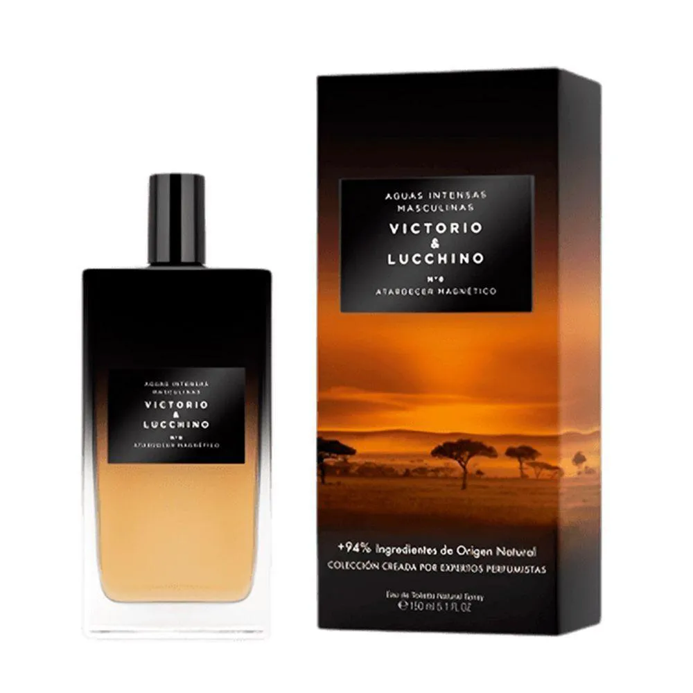 O Victorio & Lucchino N°8 Atardecer Magnético Eau de Toilette é uma fragrância masculina que evoca o magnetismo misterioso de um entardecer encantador. Este perfume faz parte da coleção de fragrâncias da renomada marca espanhola Victorio & Lucchino e foi criado para transmitir uma aura de mistério, elegância e sedução.