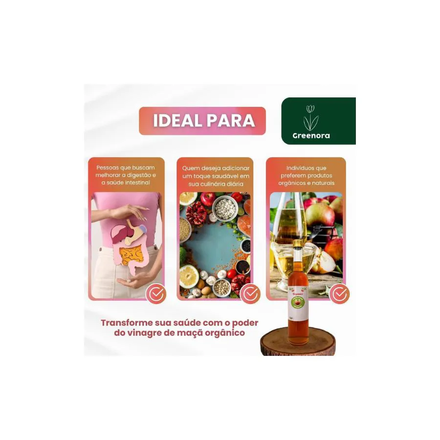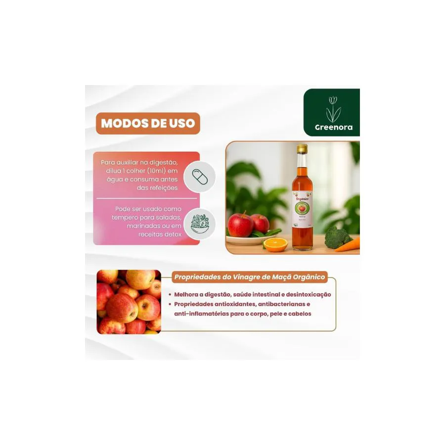 O Vinagre de Maçã Orgânico São Geraldo é produzido artesanalmente a partir de maçãs orgânicas selecionadas, garantindo um produto puro, rico em nutrientes e enzimas naturais. Com acidez balanceada de 5,3%, este vinagre preserva todas as propriedades benéficas da fruta, incluindo a valiosa "mãe do vinagre" - um concentrado natural de probióticos e bactérias acéticas que transformam o álcool em ácido acético durante a fermentação.