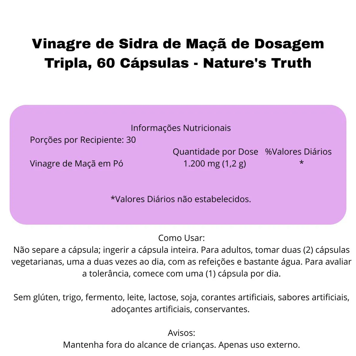 Vinagre de Sidra de Maçã de Dosagem Tripla, 60 cápsulas - Nature's Truth