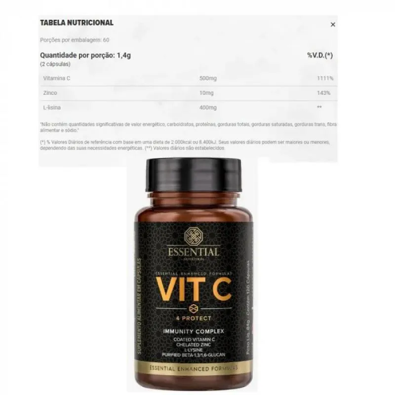 VIT C 4 PROTECT - VITAMINA C - (120 CAPS) - ESSENTIAL NUTRITION