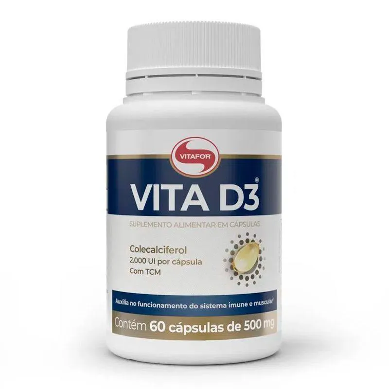 VITA D3 ® Vitafor é a apresentação da vitamina D3 (colecalciferol) em cápsula, tendo uma alta concentração por cápsula, 2.000 Ui.