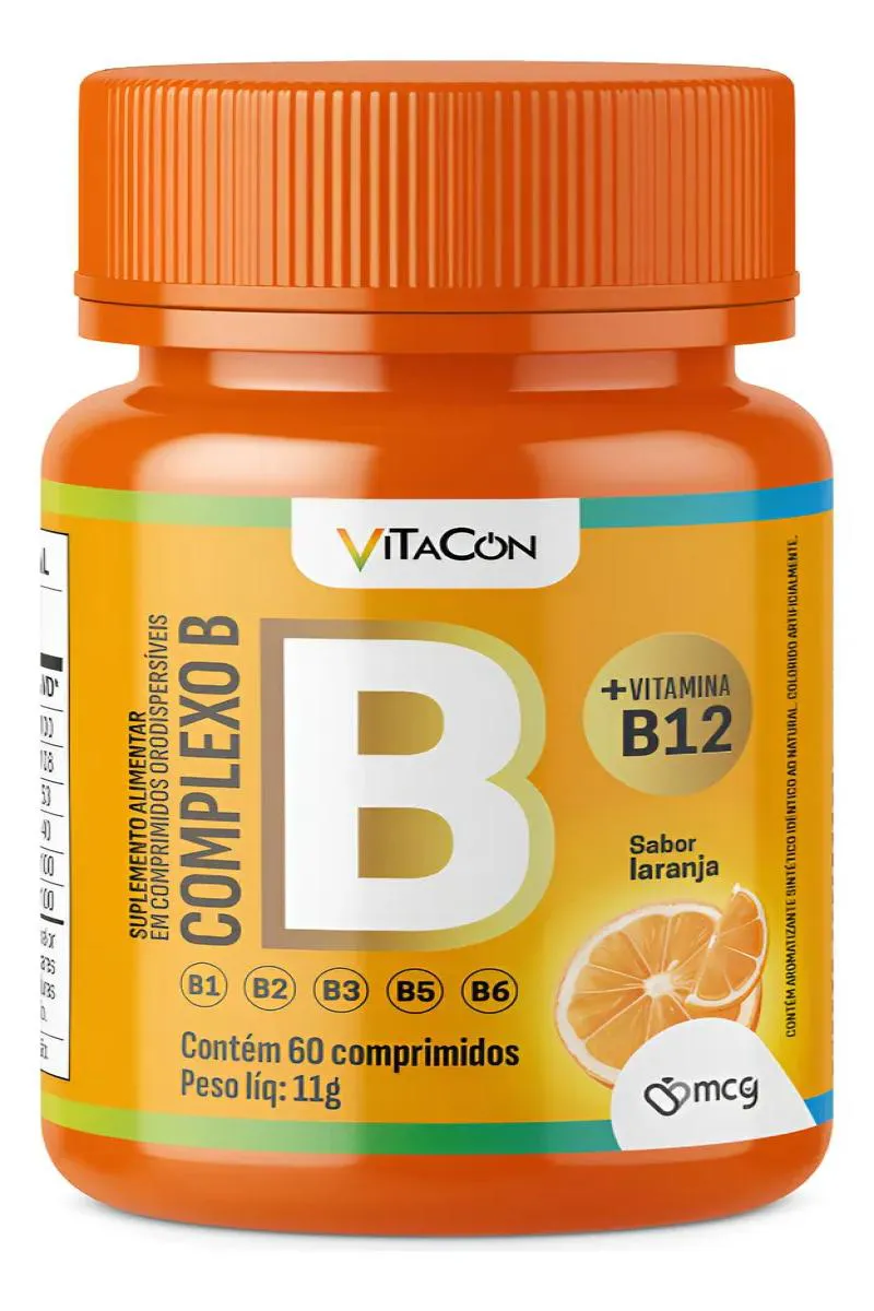 Vitacon Complexo B + B12 60 Comprimidos Orodispersiveis Sabor Laranja - Mcg