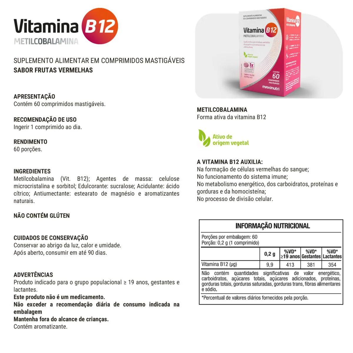 Vitamina B-12 Metilcobalamina Mastigável 60 Comprimidos Maxinutri
