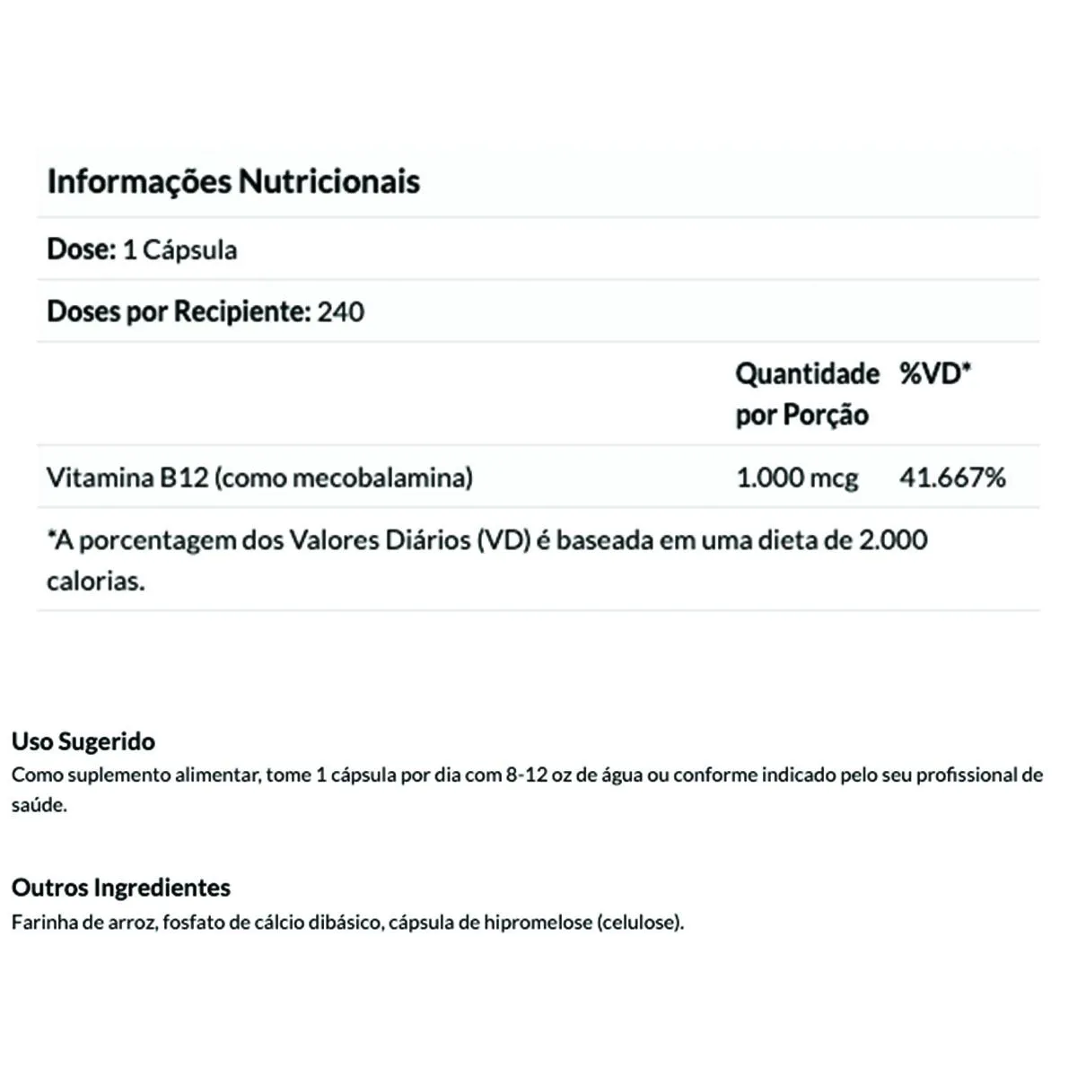 ATENÇÃO   Produto original importado Produto disponível no Brasil       SUGESTÃO DE USO: Tomar 1 cápsula por dia com água ou conforme indicado pelo seu profissional de saúde.