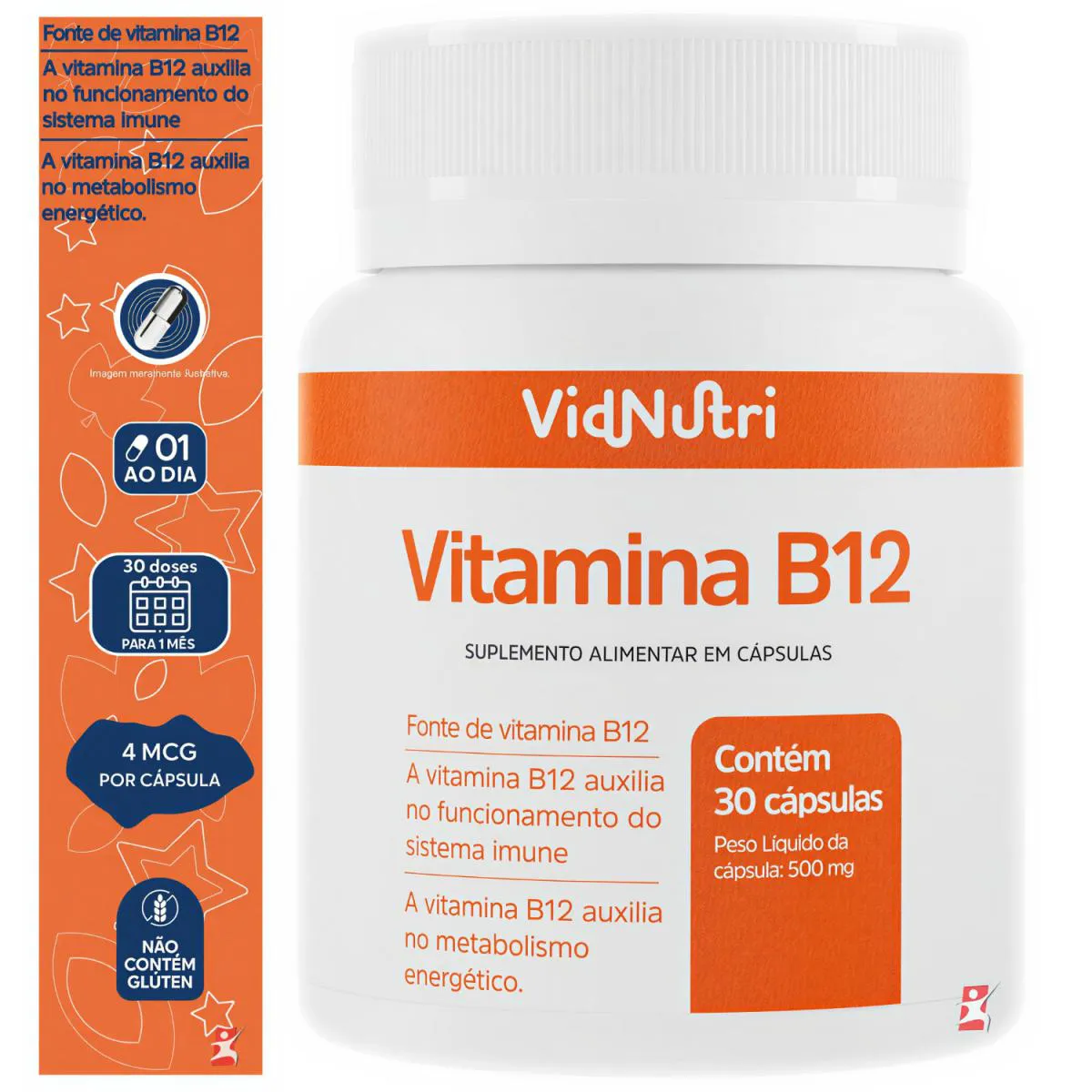 Vitamina B12 Cianocobalamina 1 ao Dia 30 Capsulas - Vidnutri