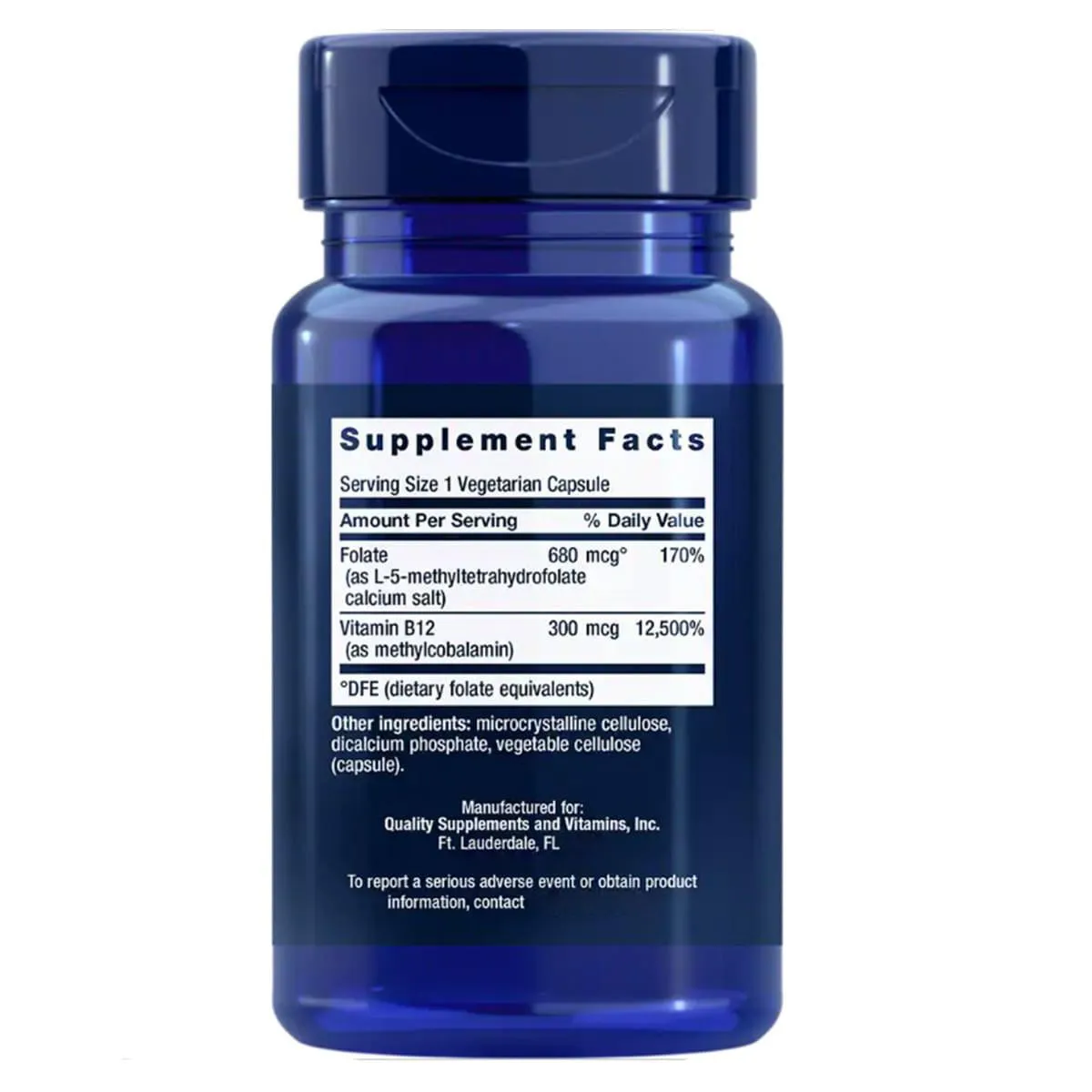 VITAMINA B12 COM BIOATIVO FOLATO 90 CAPSULAS - LIFE EXTENSION