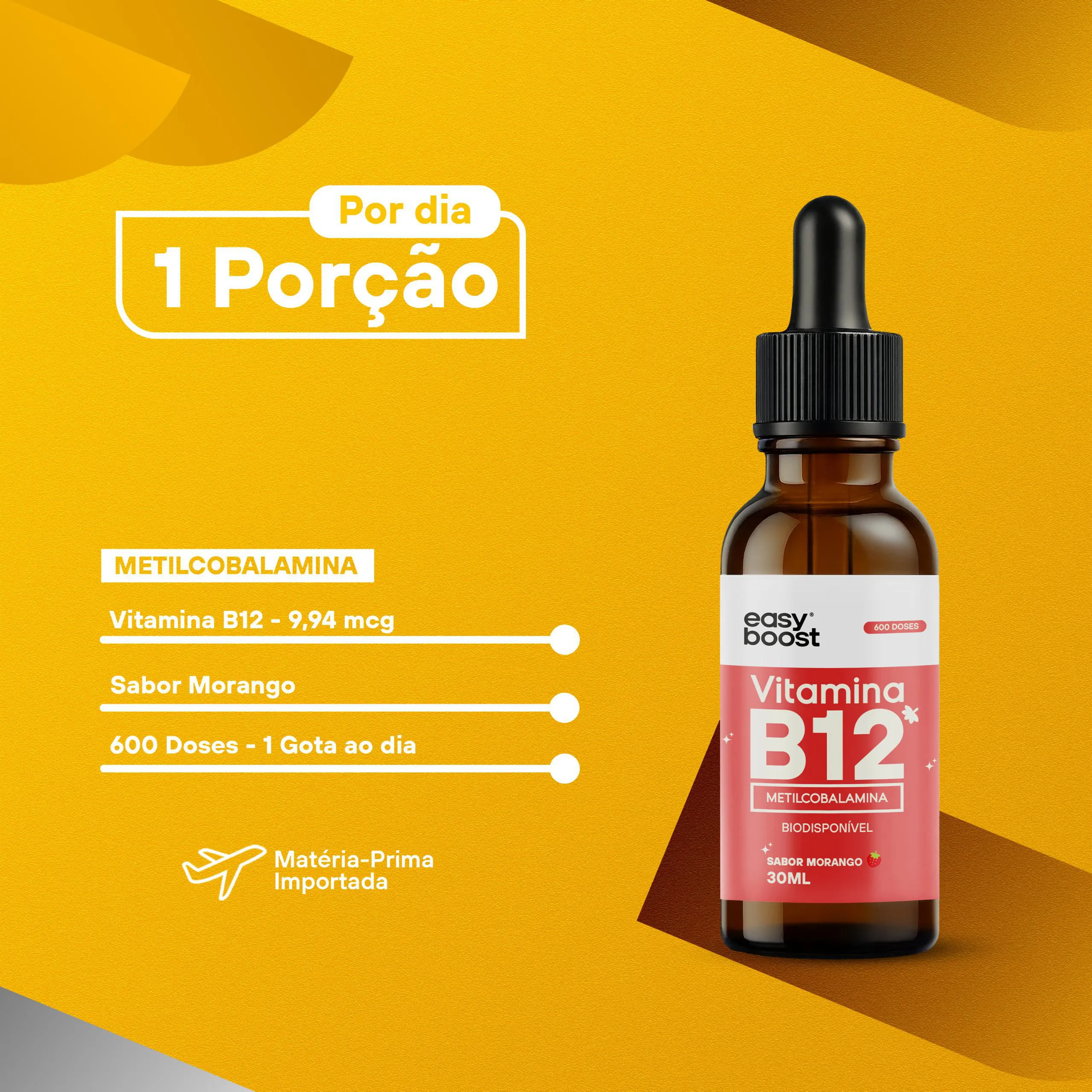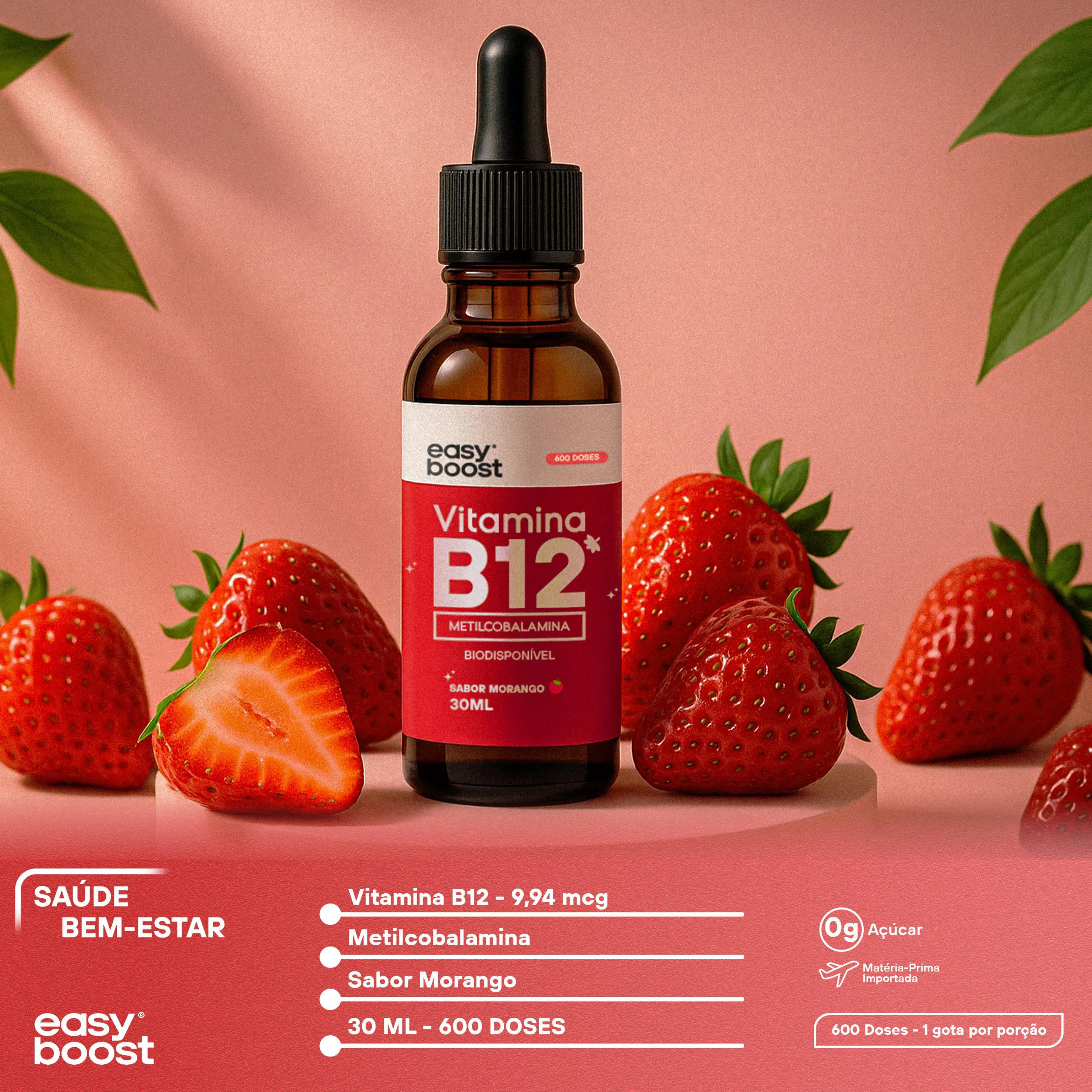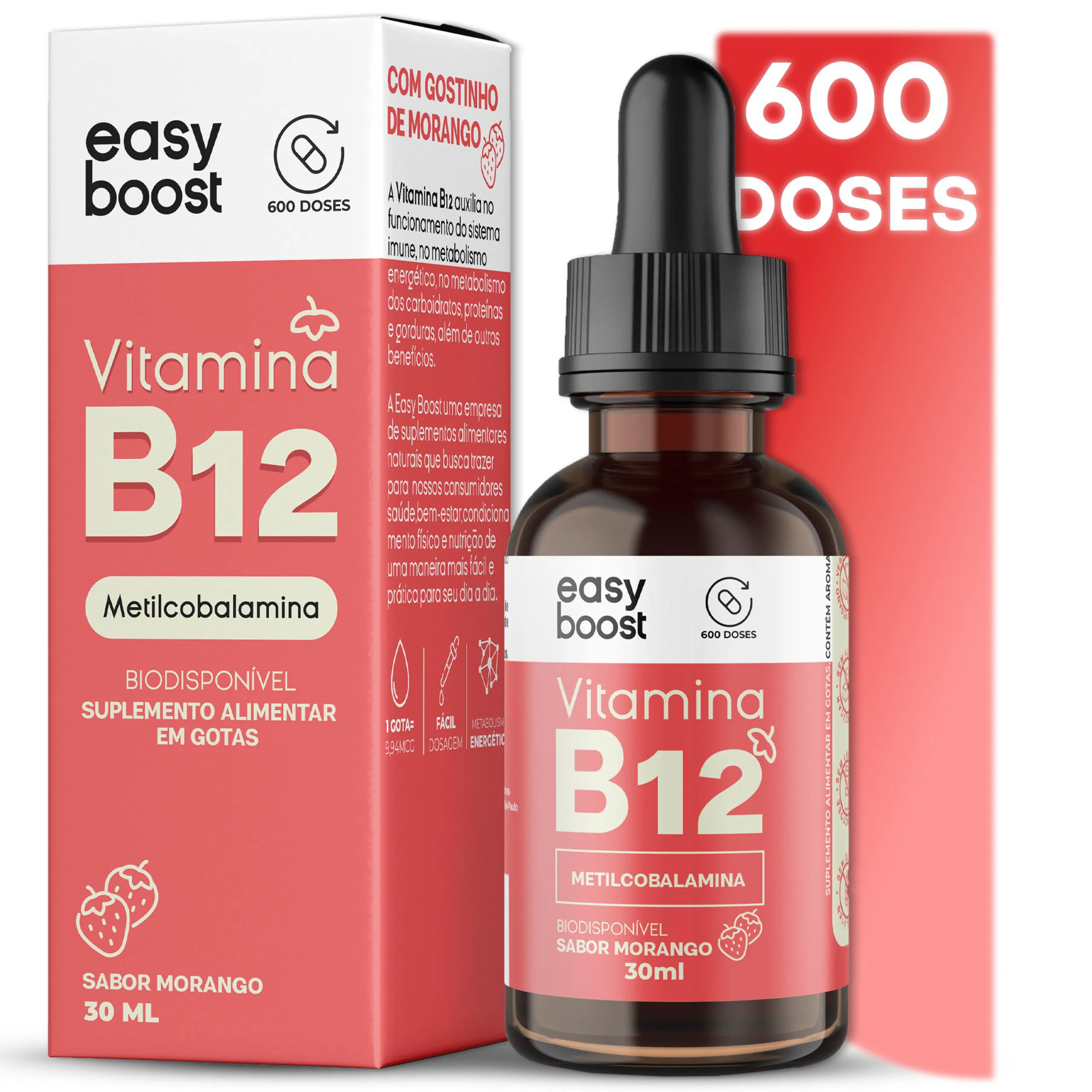 Neste anúncio você irá adquirir 1 Frasco de vitamina B12 Liquida sabor Morango, com 30ml totalizando 600 doses, com uma validade longa de no mínimo 12 meses.