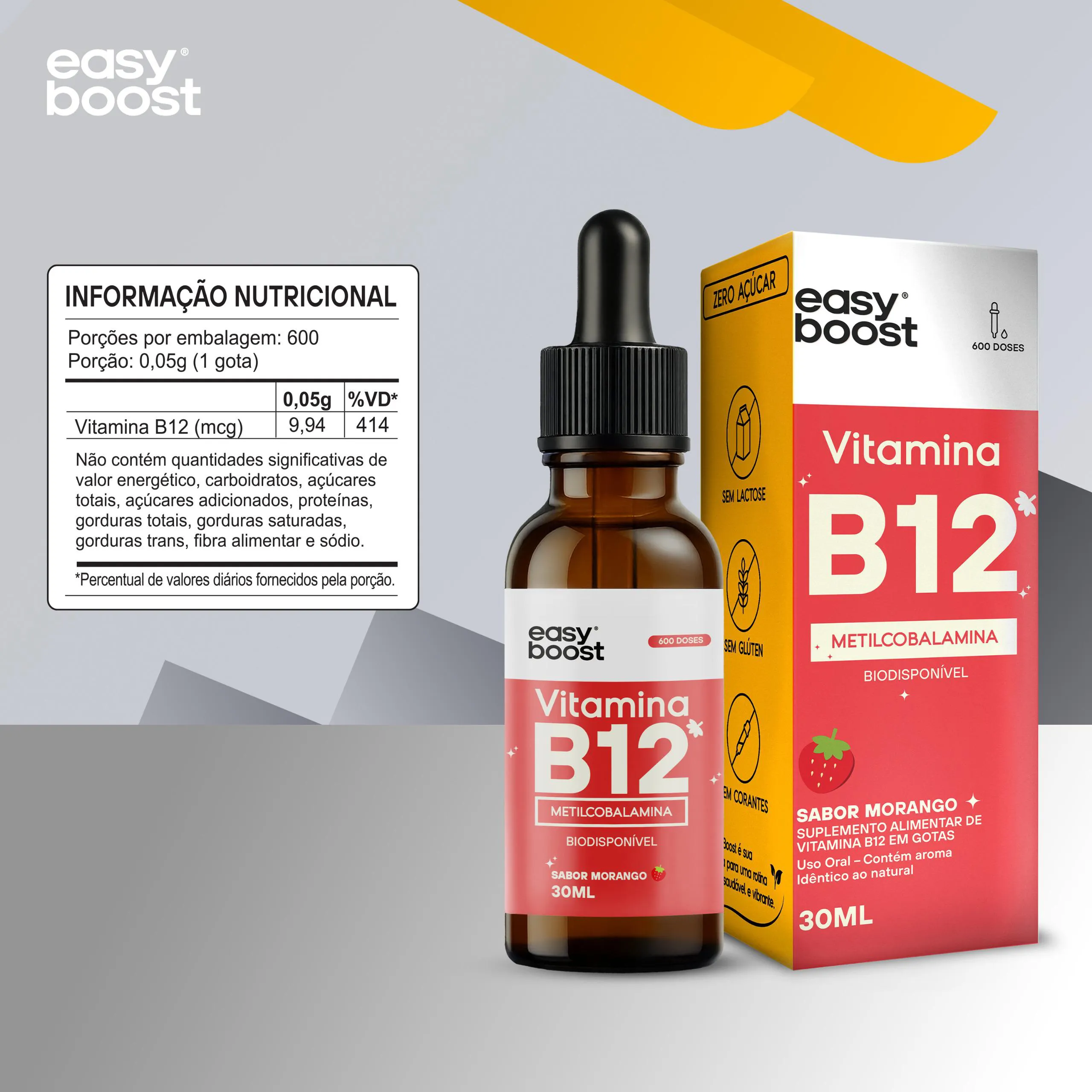 Vitamina B12 Drops Metilcobalamina 413% Vegan Easyboost 30ml