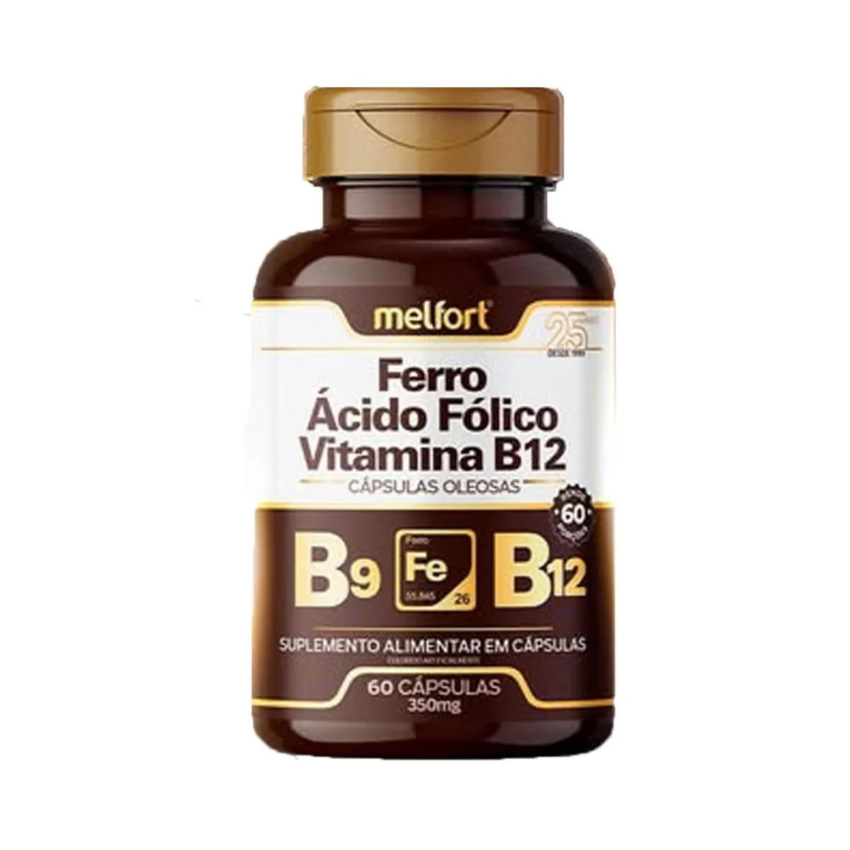 Vitamina B12 + Ferro + Ácido Fólico 60Cps SEM Sabor