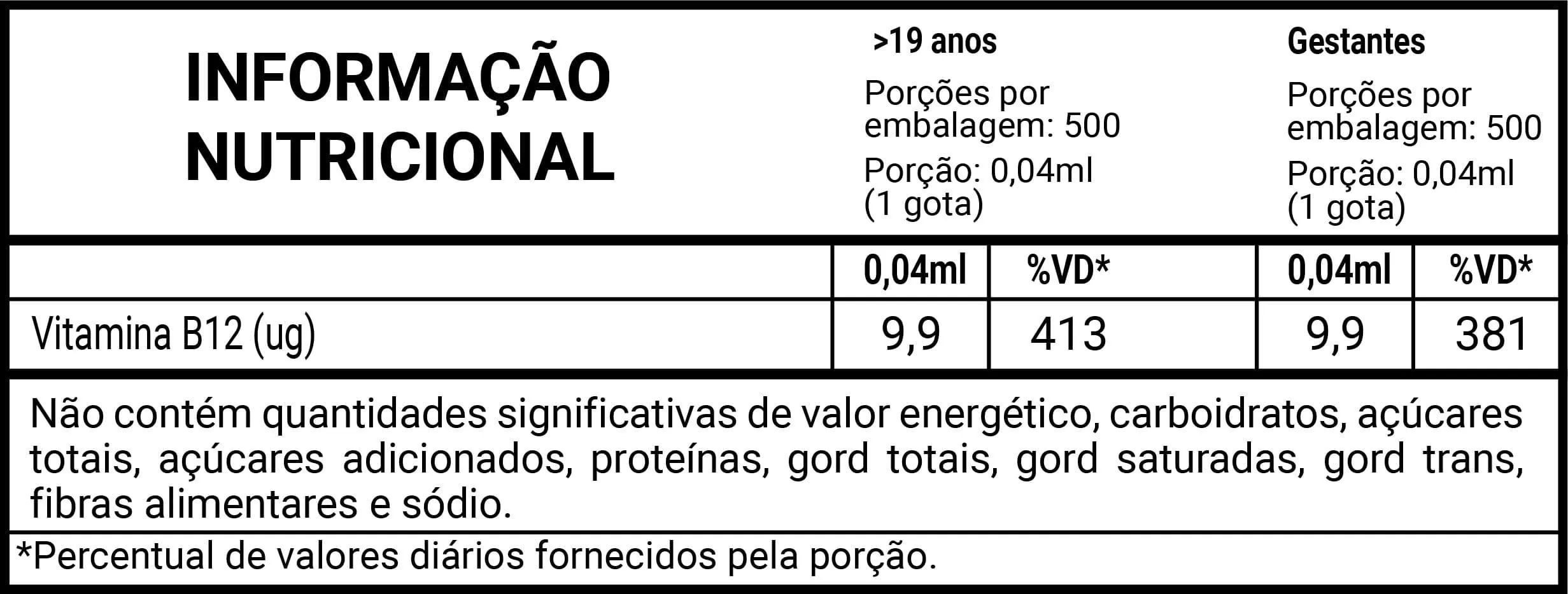 Água, metilcobalamina (vitamina B12), agente de massa glicerina, antioxidante ácido cítrico e aroma natural de amora, cereja e framboesa.