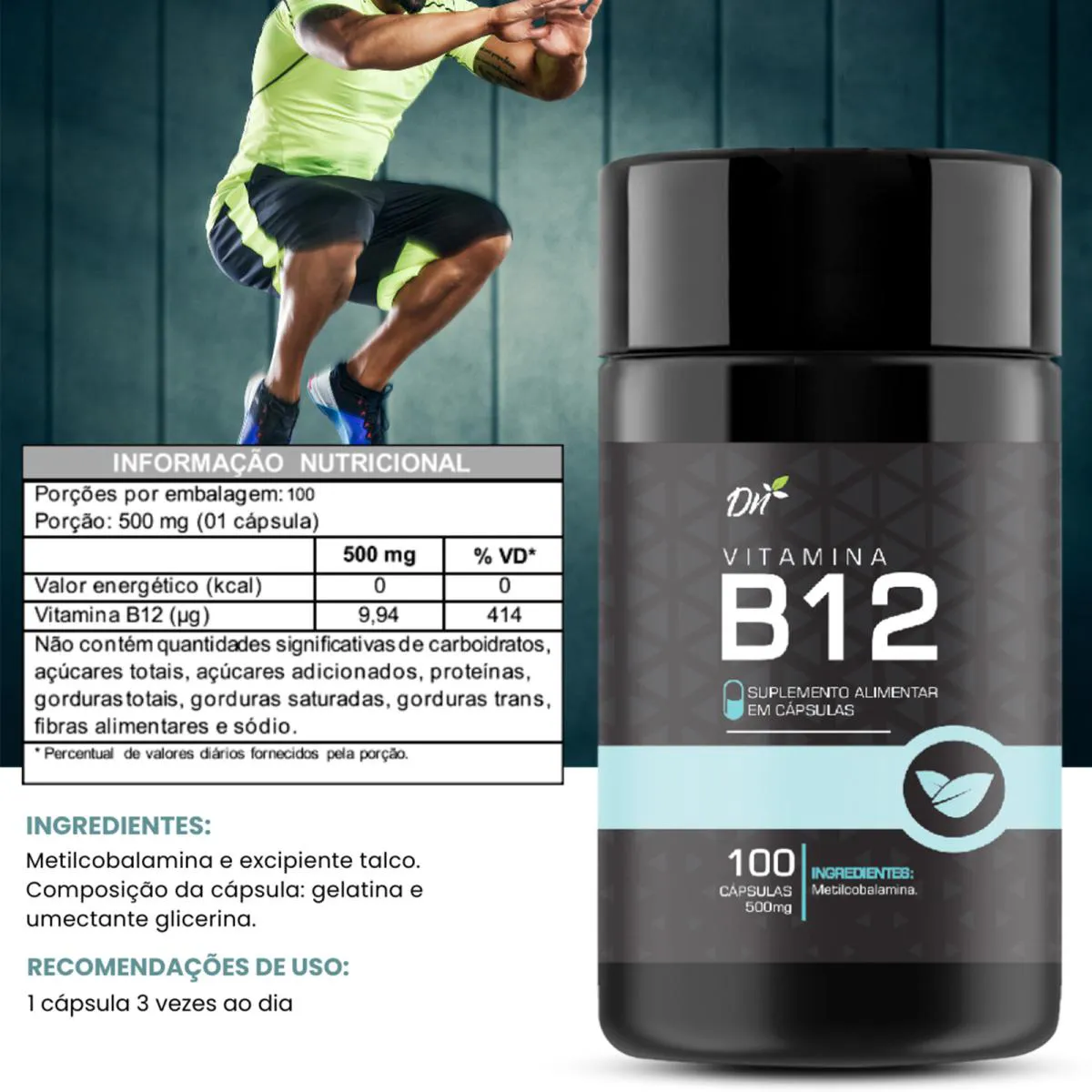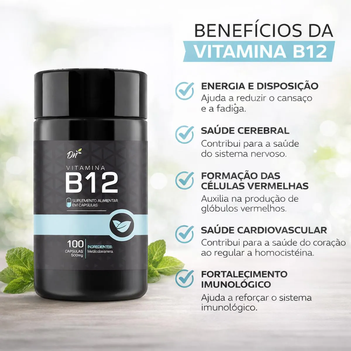 vitamina B12 Metilcobalamina 100 Cápsulas A Vitamina B12 Metilcobalamina é uma forma ativa da vitamina B12, essencial para o bom funcionamento do organismo. A metilcobalamina é altamente biodisponível e participa de processos importantes como formação das células vermelhas do sangue, metabolismo energético e saúde do sistema nervoso. Ideal para quem busca mais energia, disposição e suporte para a saúde neurológica. Principais Benefícios Auxilia na formação das células vermelhas do sangue Contribui para o metabolismo energético Ajuda a reduzir o cansaço e a fadiga Auxilia no funcionamento do sistema nervoso Contribui para a saúde cerebral Importante para o sistema imunológico Informações do Produto 100 cápsulas Suplemento alimentar em cápsulas Contém Vitamina B12 na forma de Metilcobalamina Sem açúcar Sem glúten Sem lactose Modo de Usar Ingerir 3 Cápsulas ao dia ou conforme orientação médica ou nutricional. Importante Este produto não é medicamento. Não exceder a recomendação diária de consumo indicada na embalagem. Manter fora do alcance de crianças. Gestantes, lactantes e pessoas com condições médicas devem consultar um profissional de saúde antes de utilizar.