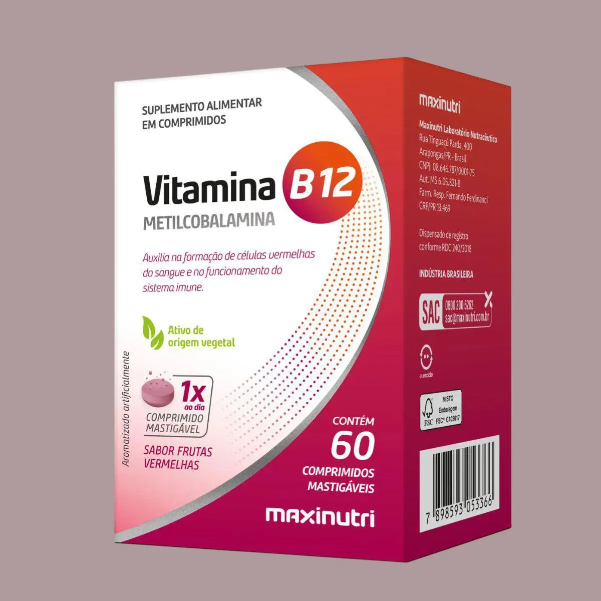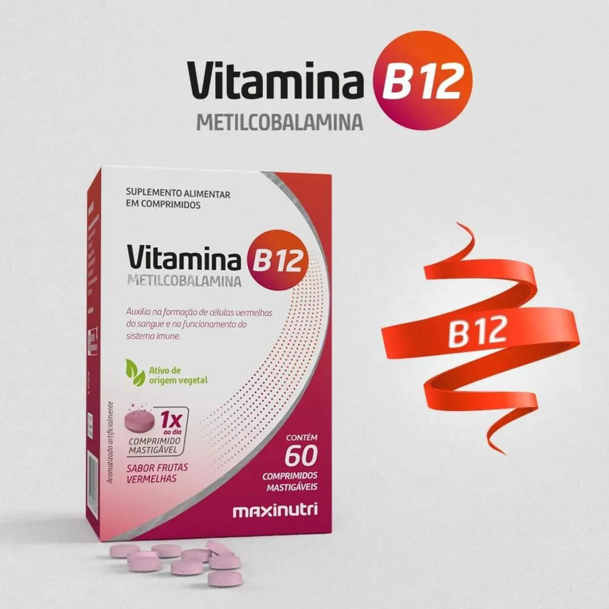 Vitamina B12 Metilcobalamina com 60 Comprimidos Mastigáveis - Maxinutri
