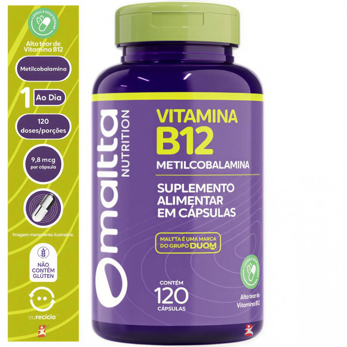 Vitamina B12 Metilcobalamina Concentrada 1 ao Dia 120 Cápsulas Vegetarianas - Maltta Nutrition