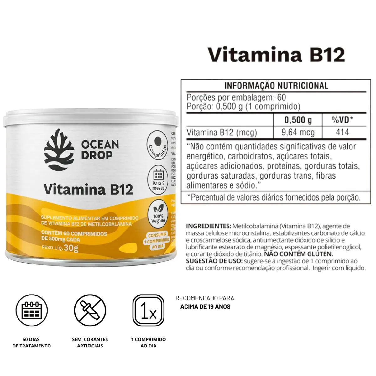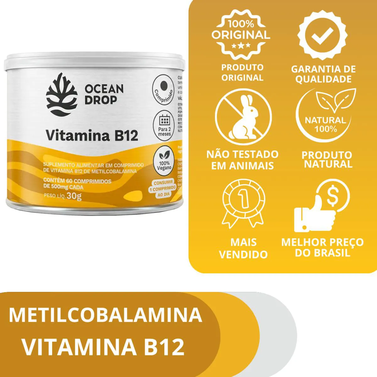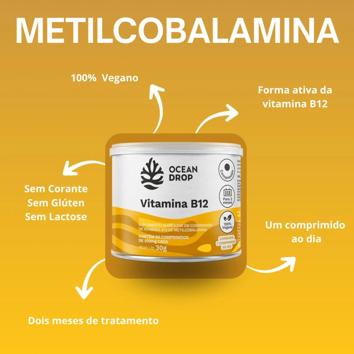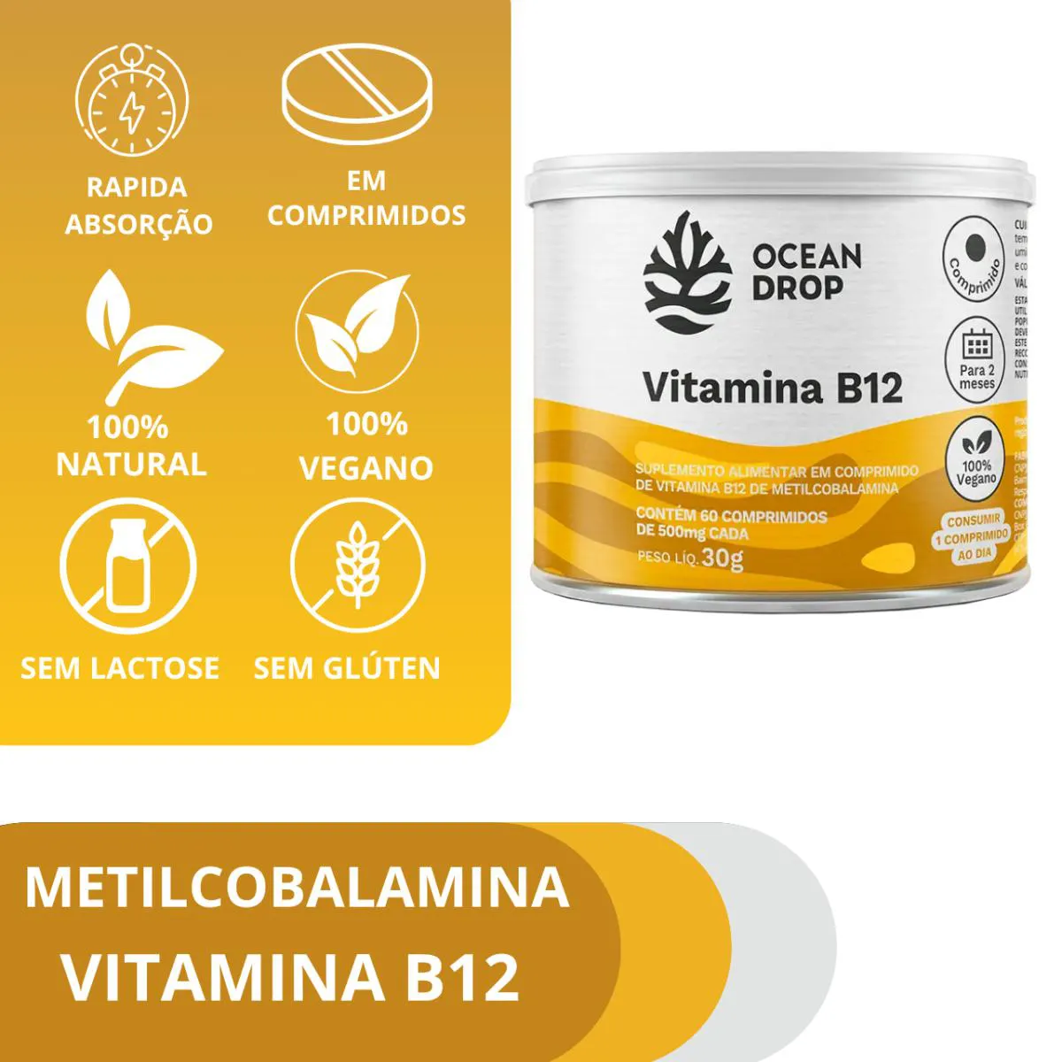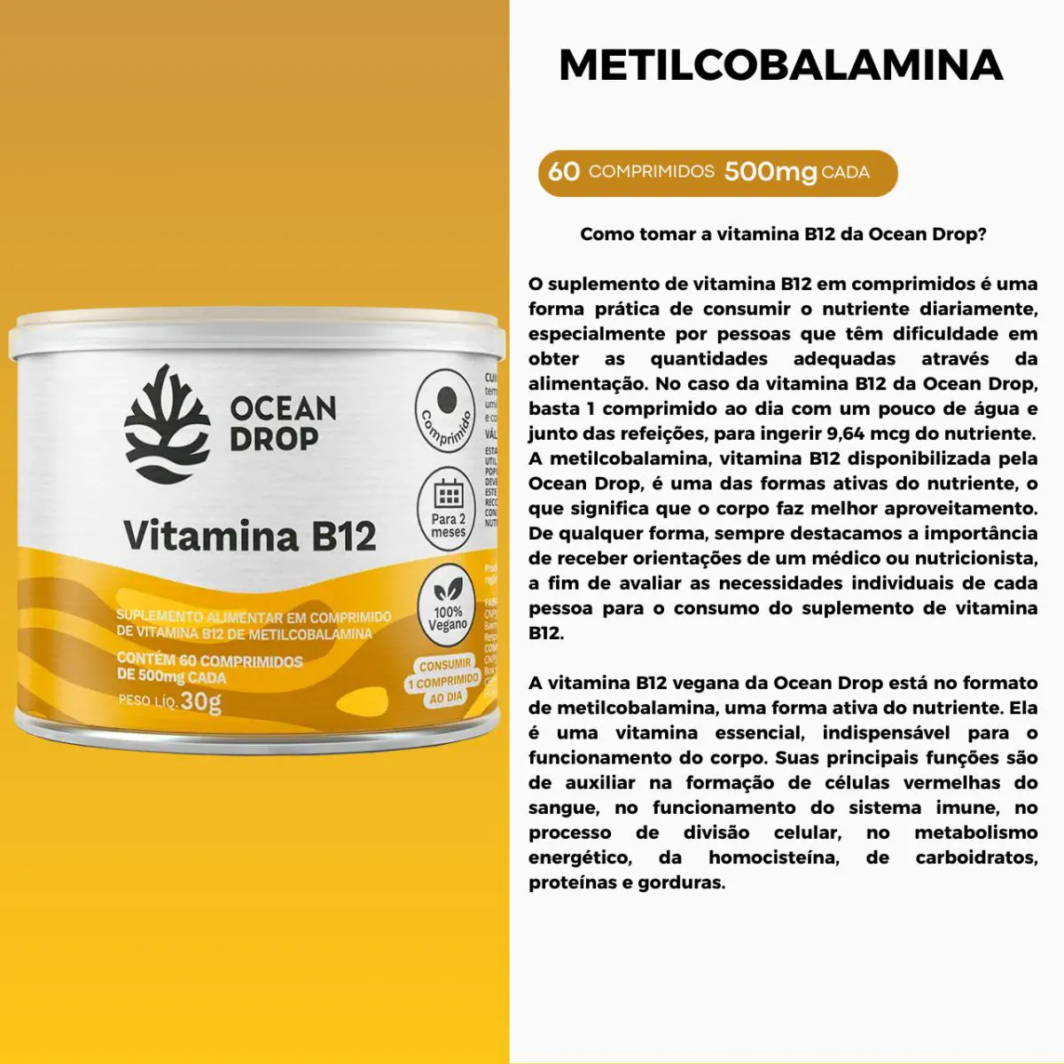 Vitamina B12 Metilcobalamina Ocean Drop 9,94Mcg 60 Tabletes Vegana B12 Forma Ativa