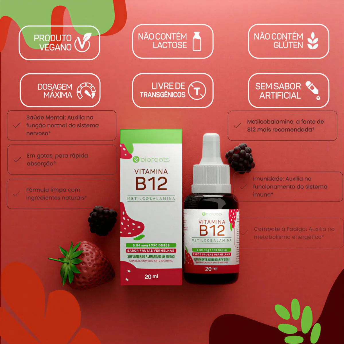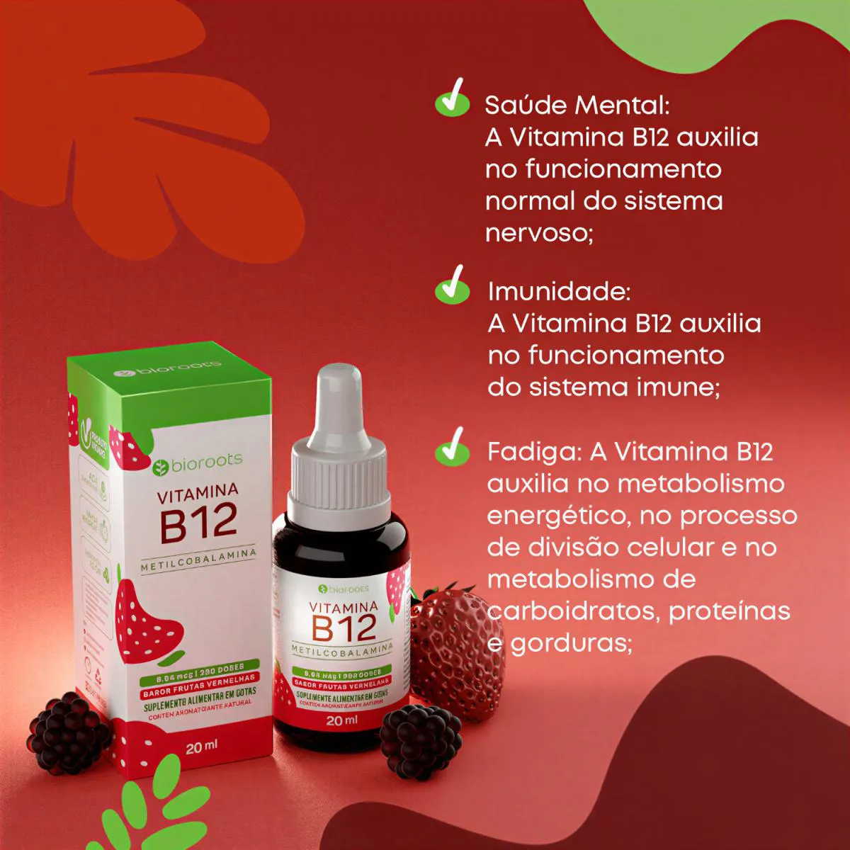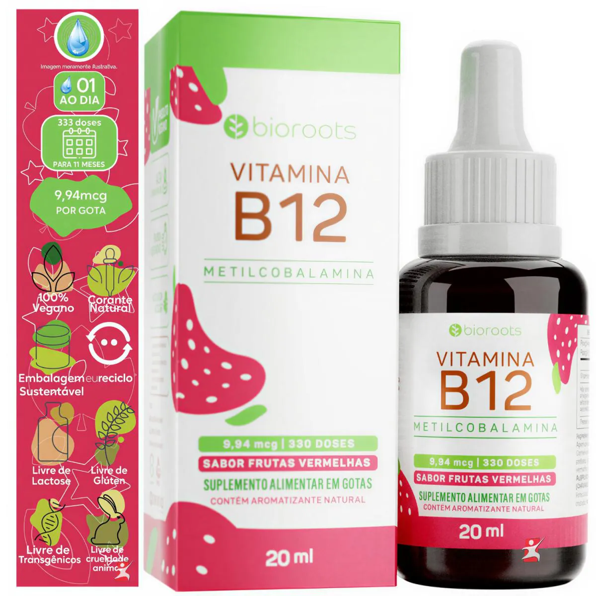 Vitamina B12 Metilcobalamina Vegana Gotas 20Ml Frutas Vermelhas - Bioroots