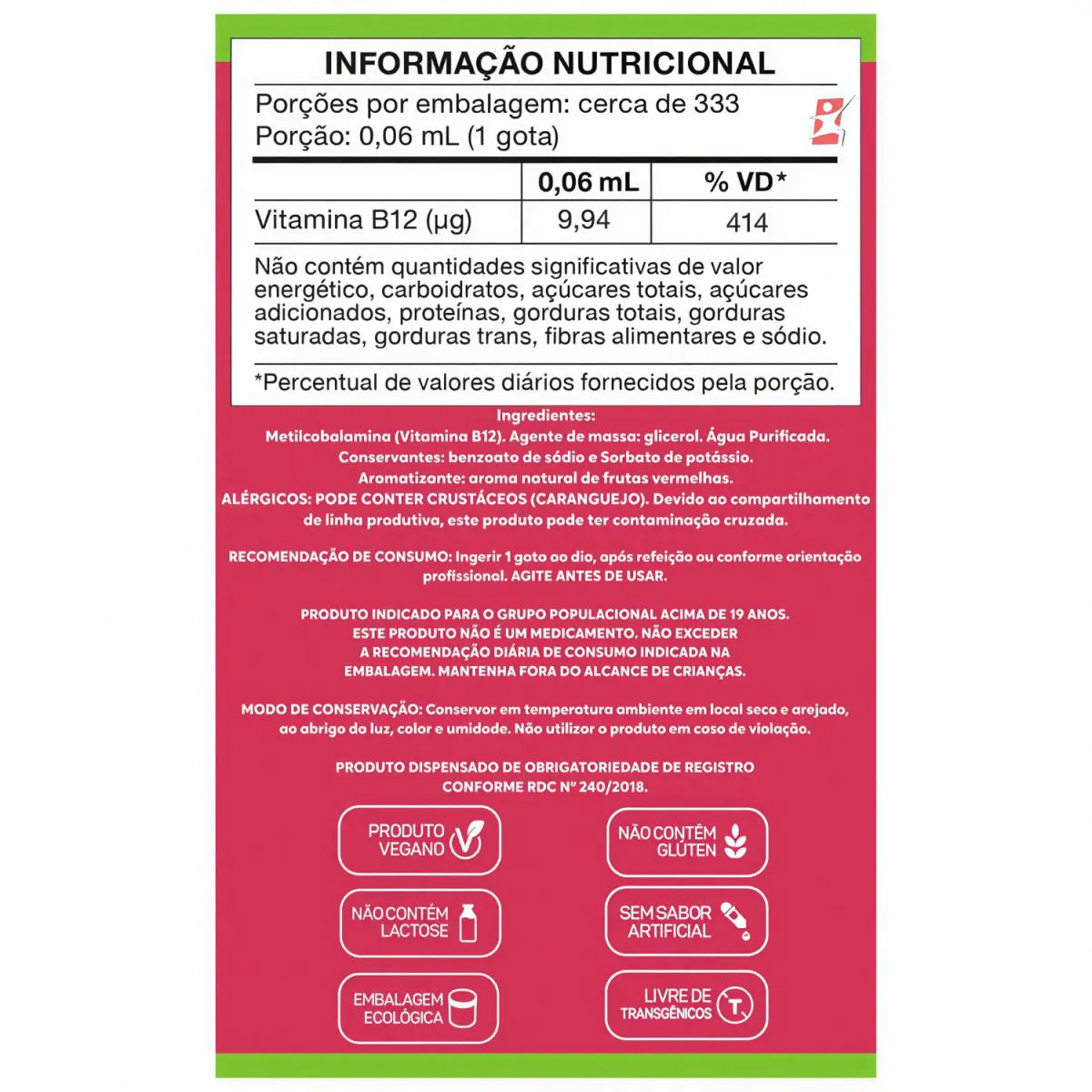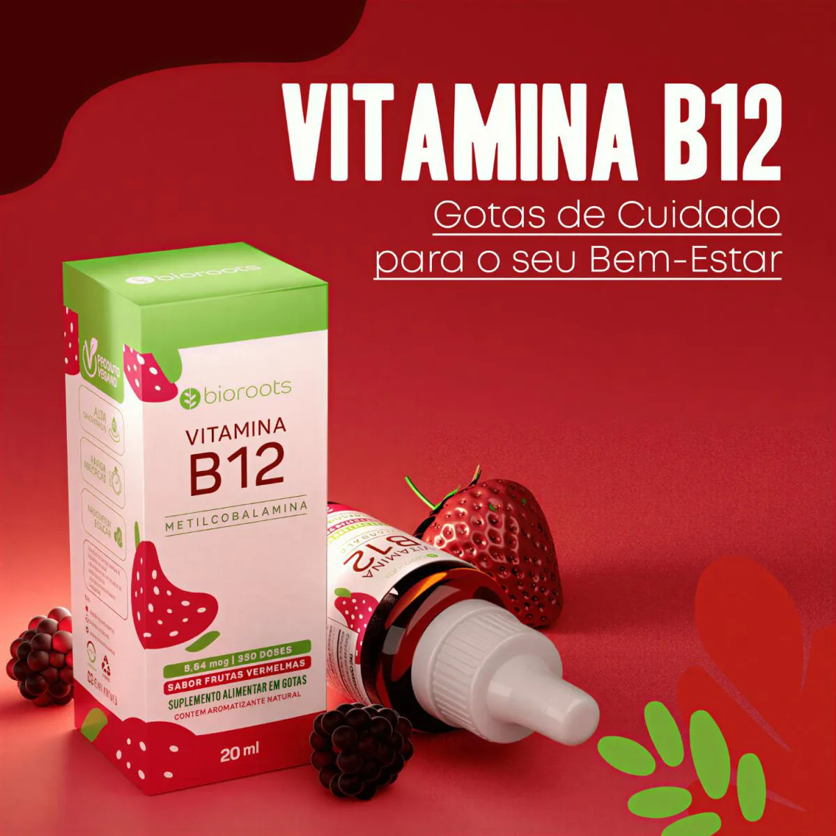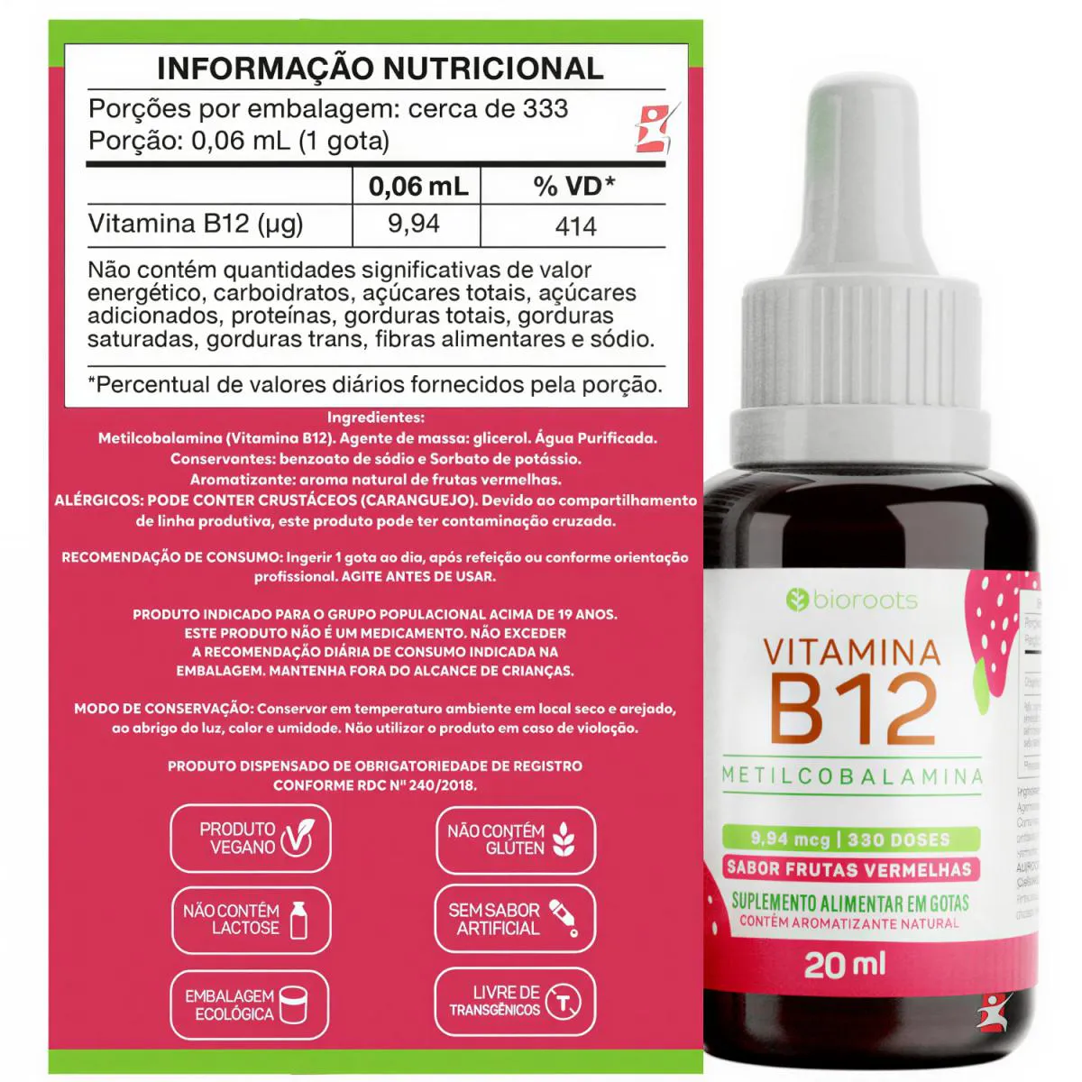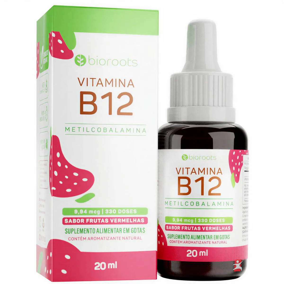 Vitamina B12 Metilcobalamina Vegana Gotas 20Ml Frutas Vermelhas - Bioroots