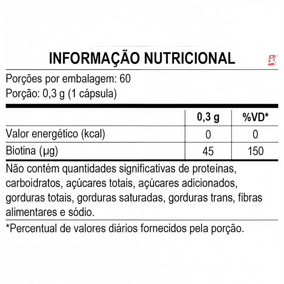 vitamina B7 D-BIOTINA CONCENTRADA cabelo PELE E UNHAS 60 CAPSULAS - APISNUTRI DESCRIÇÃO Conhecida como a vitamina da beleza, a Biotina ou Vitamina B7 pode ser encontrada na gema do ovo, leite, peixe, fígado, arroz integral, tomate, banana, dentre tantas outras fontes. Contribui para a manutenção dos cabelos, da pele e mucosas, além de ser muito importante no metabolismo de proteínas, carboidratos, gorduras e energético BENEFÍCIOS - Rende 60 doses/porções; - Apenas 1 cápsula ao dia; - Fórmula concentrada; - Cabelo, pele e unhas; - Beleza da mulher. TABELA NUTRICIONAL Anexo nas imagens do anúncio. SUGESTÃO DE USO Ingerir 1 (uma) cápsula ao dia. Recomendação de uso: 19 (dezenove) anos ou acima. INGREDIENTES D-biotina e lubrificante talco. Cápsula: gelatina e água deionizada. NÃO CONTÉM GLÚTEN. RECOMENDAÇÕES & CUIDADOS - Este produto não é um medicamento. - Não exceder a recomendação diária de consumo indicada na embalagem. - Mantenha fora do alcance de crianças. - Gestante e/ou lactantes somente devem consumir este produto sob orientação de nutricionista ou médico. - Manter a embalagem bem fechada e em local seco e fresco. Não expor à luz solar. Consumir em até 60 dias após aberto.