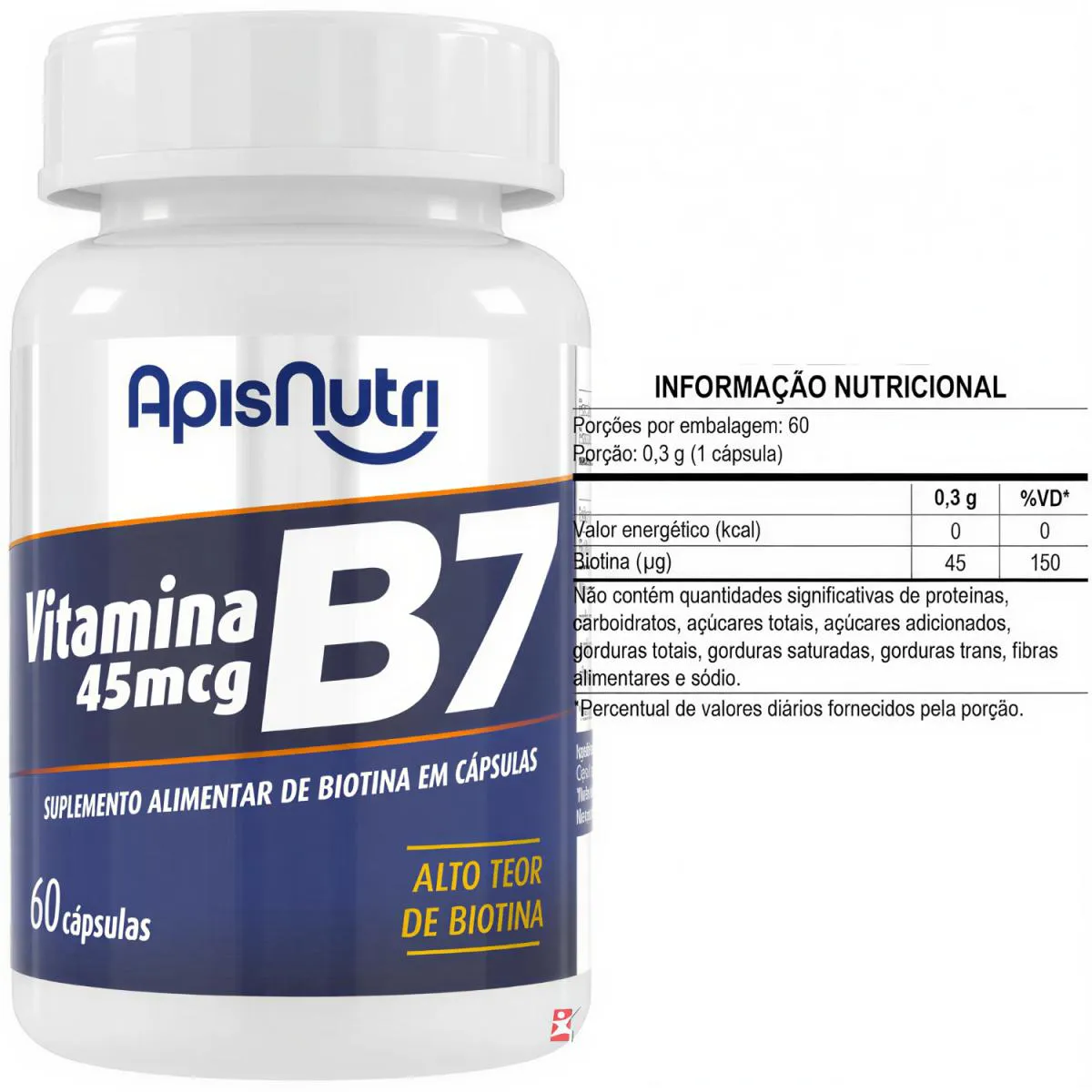 Vitamina B7 D-Biotina Concentrada Cabelo Pele e Unhas 60 Capsulas - Apisnutri
