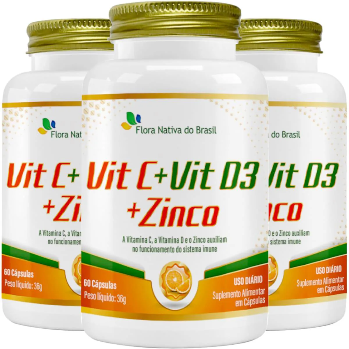 Vitamina C D3 e Zinco 3 X 60 cápsulas Flora Nativa