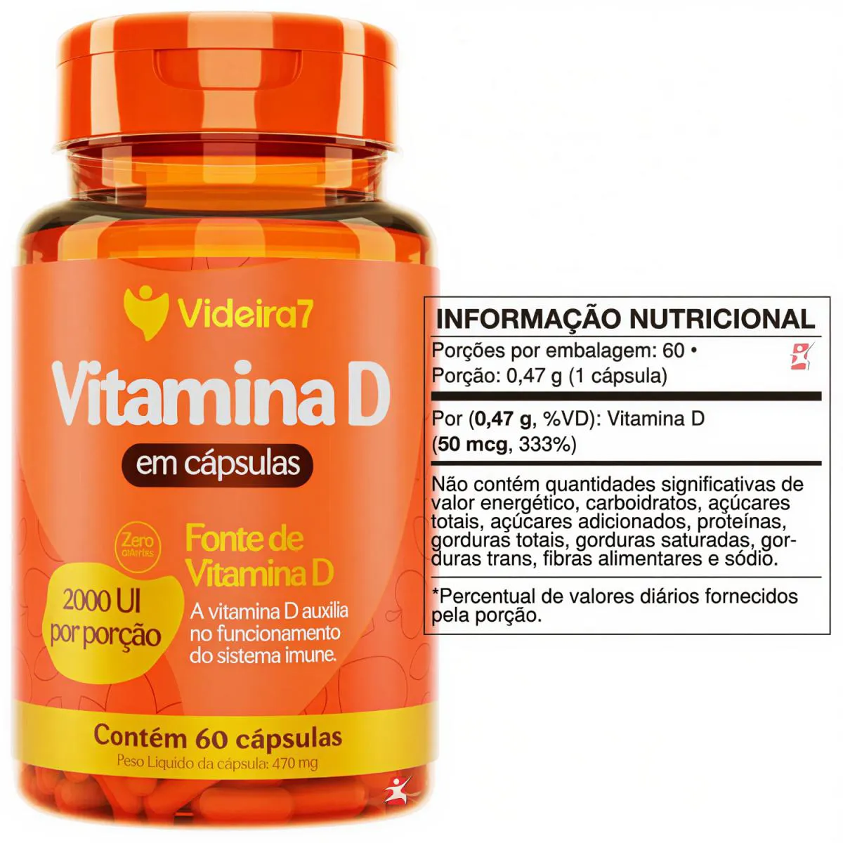Vitamina D 2000Ui Por Capsula Colecalciferol(D3) 1 ao Dia 60 Capsulas - Videira 7