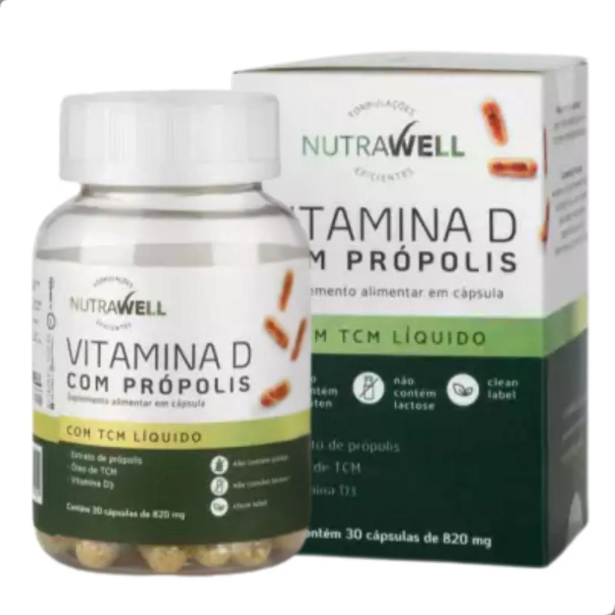 Vitamina D com Propolis e Tcm 820Mg 30 Capsulas Nutrawell Natural