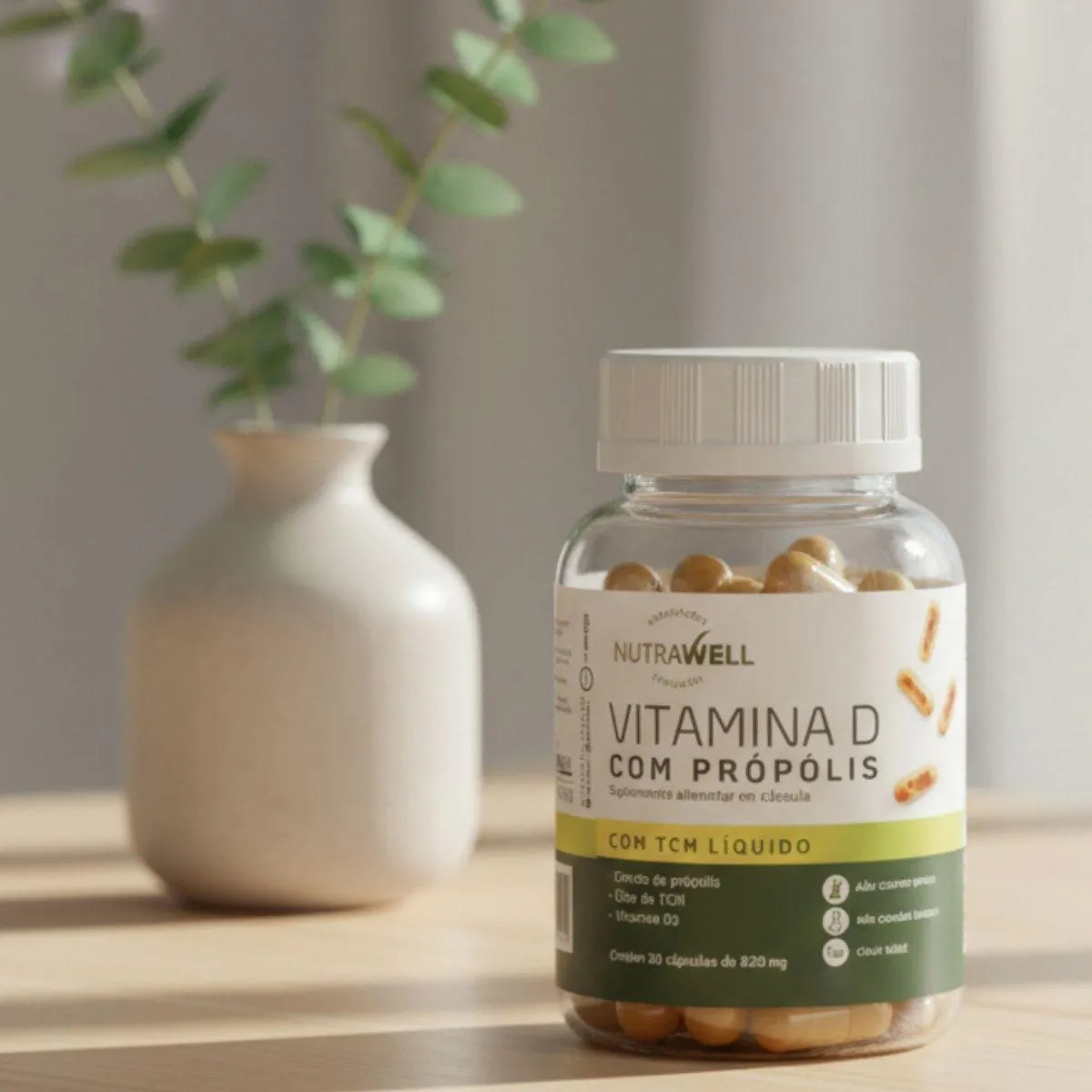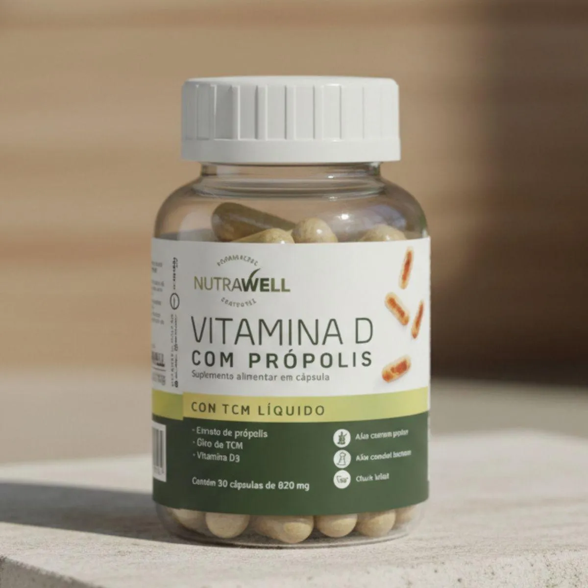 vitamina d com Própolis e TCM 820mg 30 Cápsulas Nutrawell é um suplemento em cápsulas desenvolvido para quem busca praticidade e uma proposta clara ao complementar a alimentação no dia a dia. A Nutrawell apresenta um produto com comunicação objetiva e fácil de entender, ideal para consumidores que valorizam rotina organizada, escolhas simples e informações diretas, sem complicação.A composição combina vitamina D, Própolis e TCM em uma fórmula bem definida, descrita de forma acessível e responsável, sem termos difíceis e sem promessas. Essa transparência ajuda o consumidor a saber exatamente o que está adquirindo, reforçando confiança e segurança na decisão de compra. É uma opção pensada para quem prefere suplementos com proposta clara e posicionamento comercial consistente.O formato em cápsulas facilita o consumo e torna a rotina mais prática, dispensando preparo e permitindo que o uso seja incorporado de maneira intuitiva ao cotidiano. Essa característica combina com quem tem dias corridos e procura soluções simples para manter constância, disciplina e organização, com um suplemento fácil de transportar e usar em diferentes momentos.A Nutrawell mantém uma comunicação alinhada às normas para suplementos alimentares, evitando associações indevidas e focando em clareza, simplicidade e experiência de uso descomplicada. Para uma utilização adequada, é importante seguir as orientações do rótulo e, em caso de dúvidas, buscar orientação profissional.Vitamina D com Própolis e TCM Nutrawell se destaca por unir praticidade, composição objetiva e uma proposta comercial bem definida, sendo uma escolha adequada para quem busca um suplemento em cápsulas com linguagem simples, fácil integração à rotina e comunicação transparente.