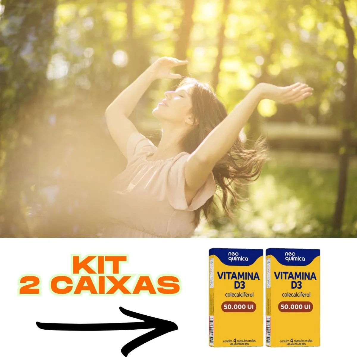 Kit 2 Caixas de vitamina D3 50 com 4cp cada caixa.