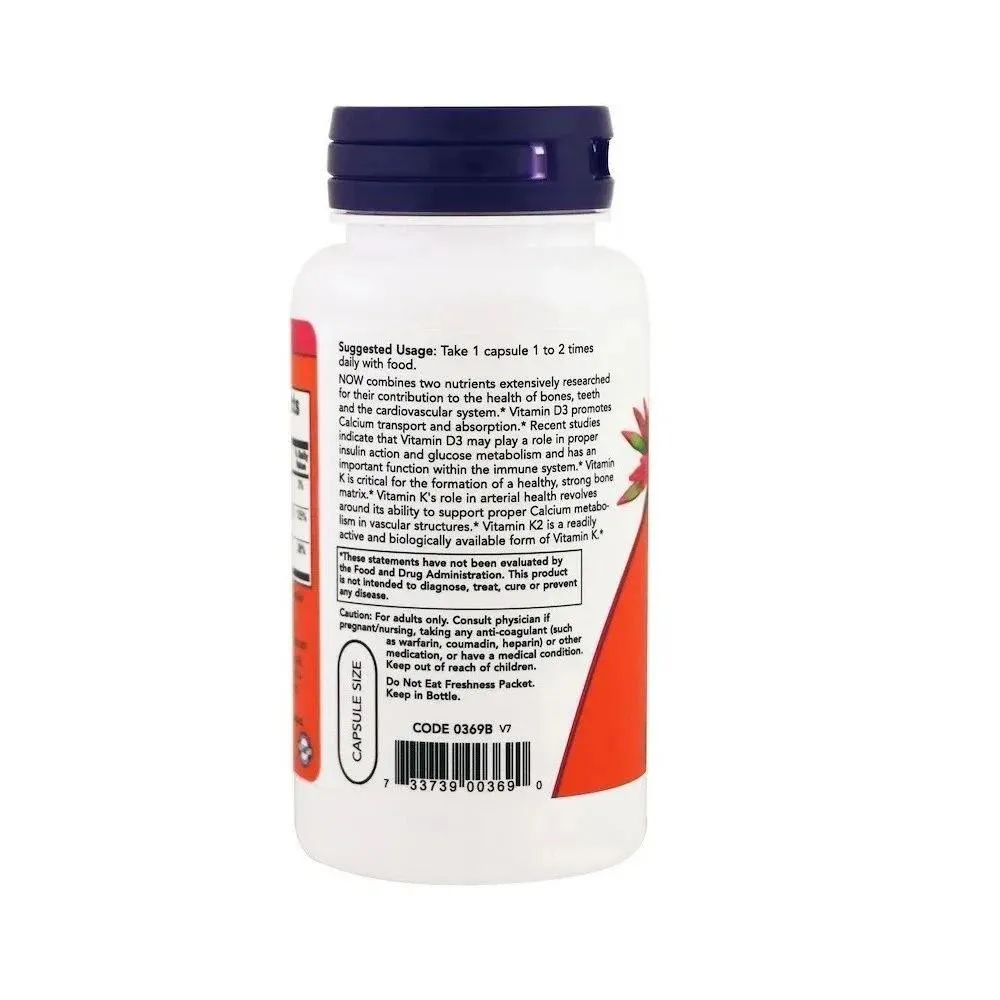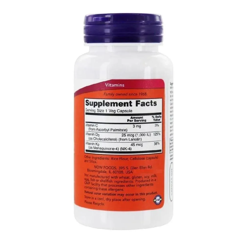 Vitamina D3 1000 Iu e K2 45 Mcg 120 cápsulas. N. Foods