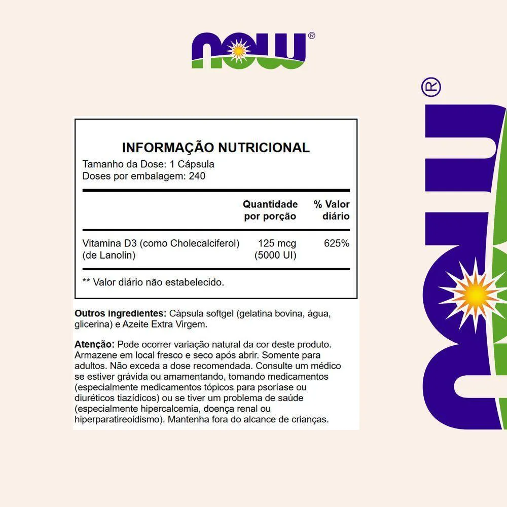 vitamina D3 125mcg 5000ui 240 Softgels Now Foods
